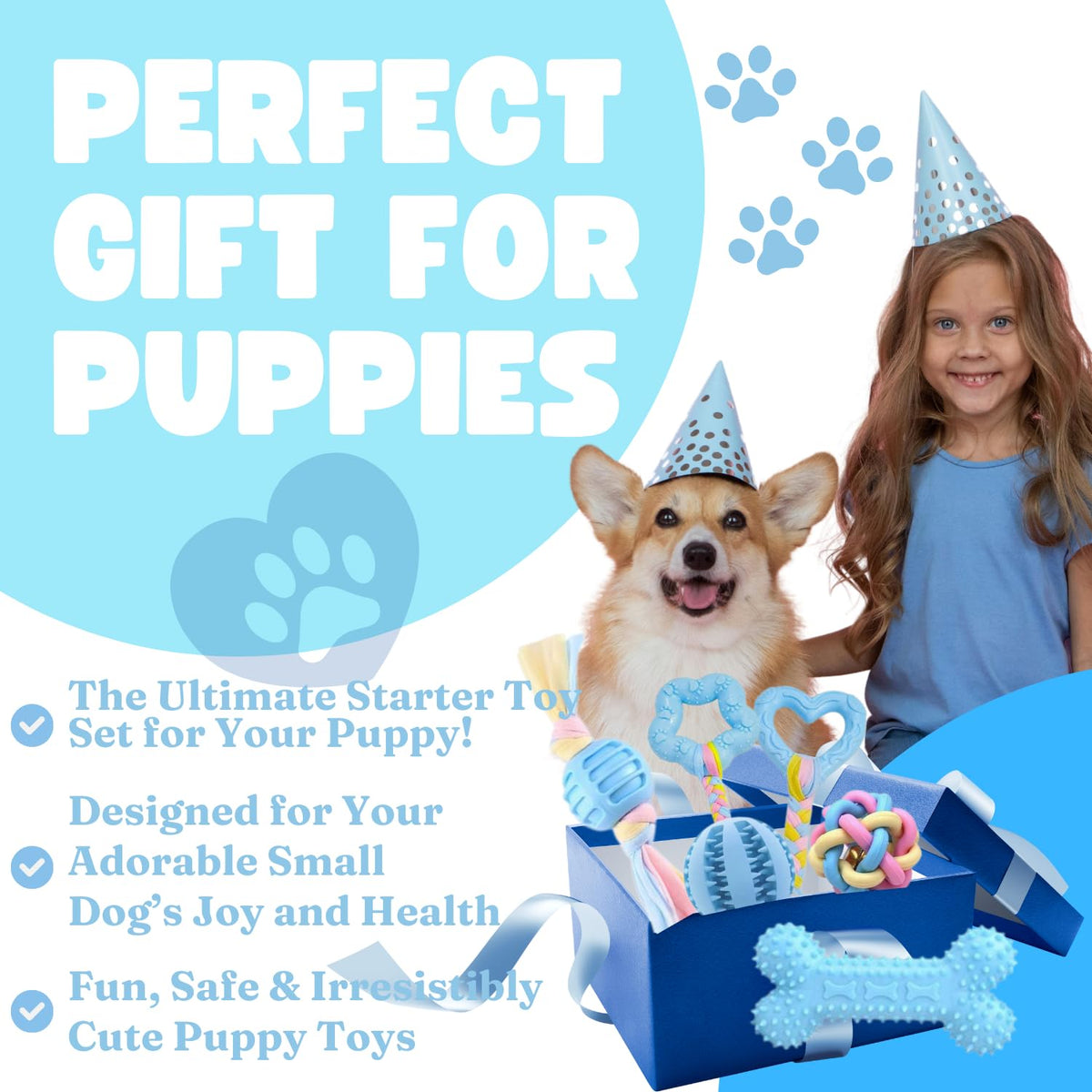 Bambinom Chew Toys For Small Dogs - 6 Pack Teething Set, Soft Rubber, Eco-Friendly, Teeth Cleaning, Interactive Blue Dog Toys