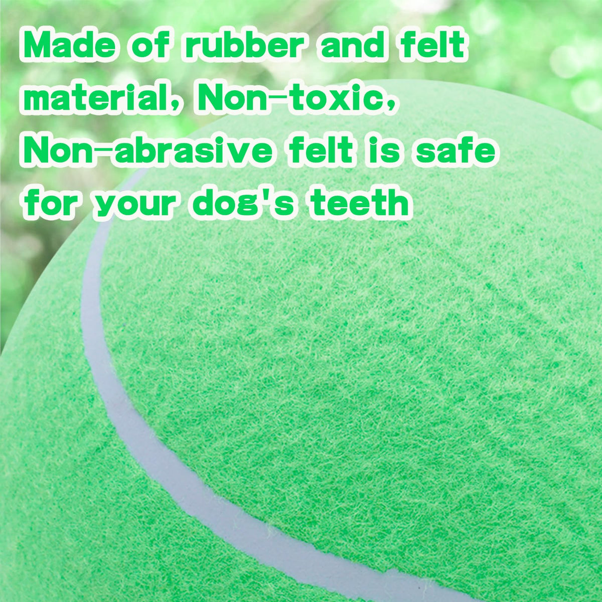 Q: Is the material used in the tennis ball safe for dogs?A: Yes, the tennis ball is made from natural rubber and ultra-thick felt, which are non-toxic and safe for your dog's teeth.