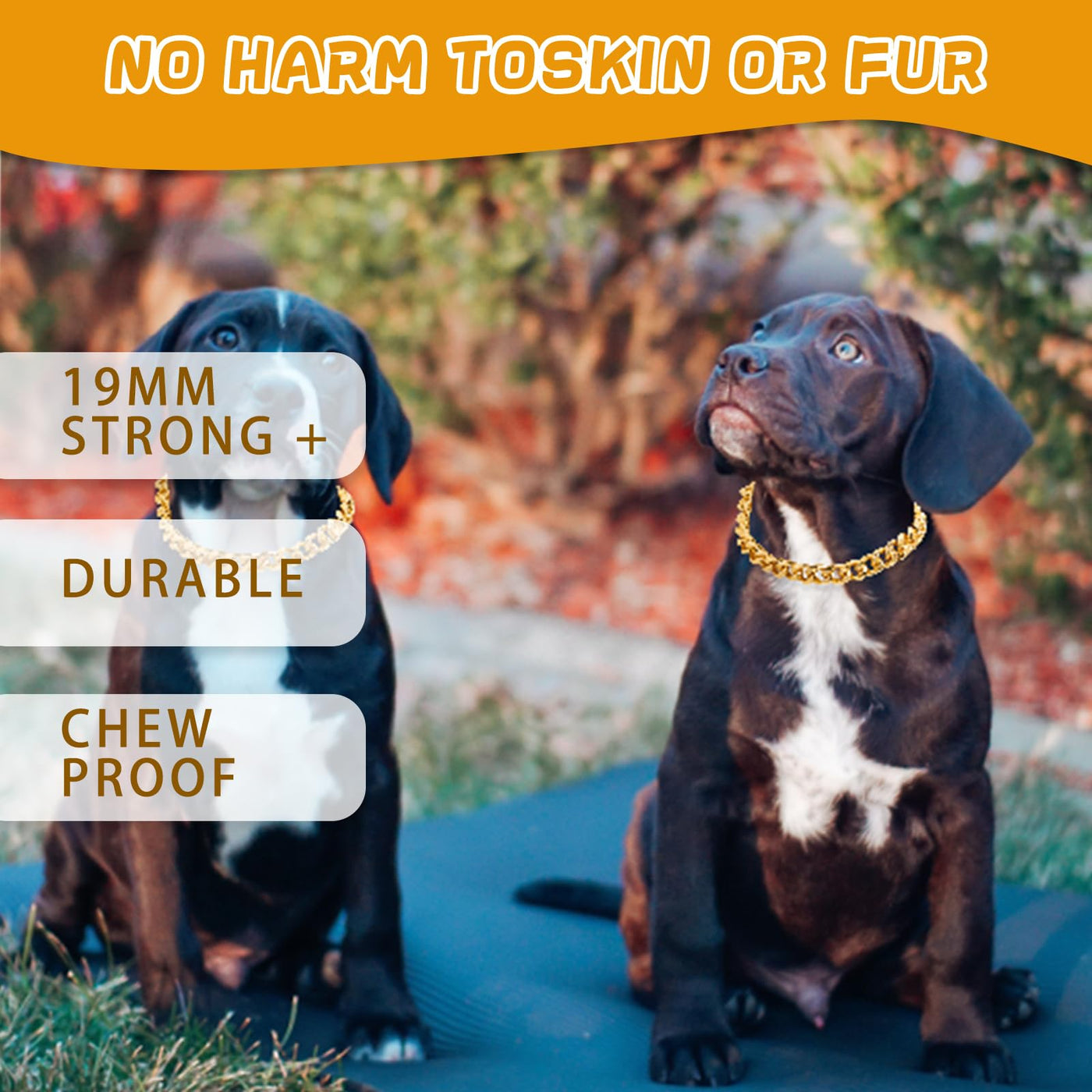 Baobote 19Mm Thick 18K Gold Plated Metal Dog Cuban Link Collar Gold Dog Chain Collar For Dogs(16'' Gold)