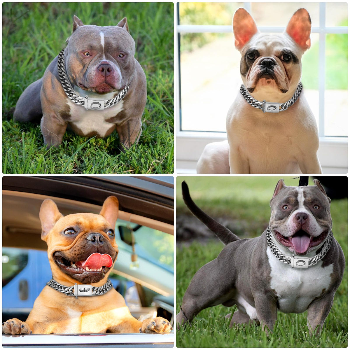 Upgrade Your Dog'S Style With The Exquisite 18K Silver Chain Dog Collar. This Heavy-Duty Collar Features A 16Mm Width And A Captivating Cuban Link Design, Giving Your Beloved Pet A Luxurious And Fashionable Look. Crafted With Premium 18K Silver, It Is Not Only Visually Appealing But Also Durable And Chew Proof. The Secure Snap Buckle Closure Ensures Easy Application And A Secure Fit, Providing Peace Of Mind During Walks Or Outdoor Adventures. Whether It'S A Casual Outing Or A Special Event, This Collar Will Make Your Dog The Center Of Attention, Showcasing Their Unique Personality And Enhancing Their Overall Appearance. Elevate Your Dog'S Style With This Stunning Silver Chain Collar That Combines Elegance, Durability, And Functionality.