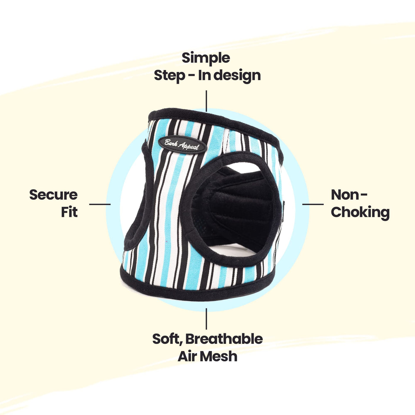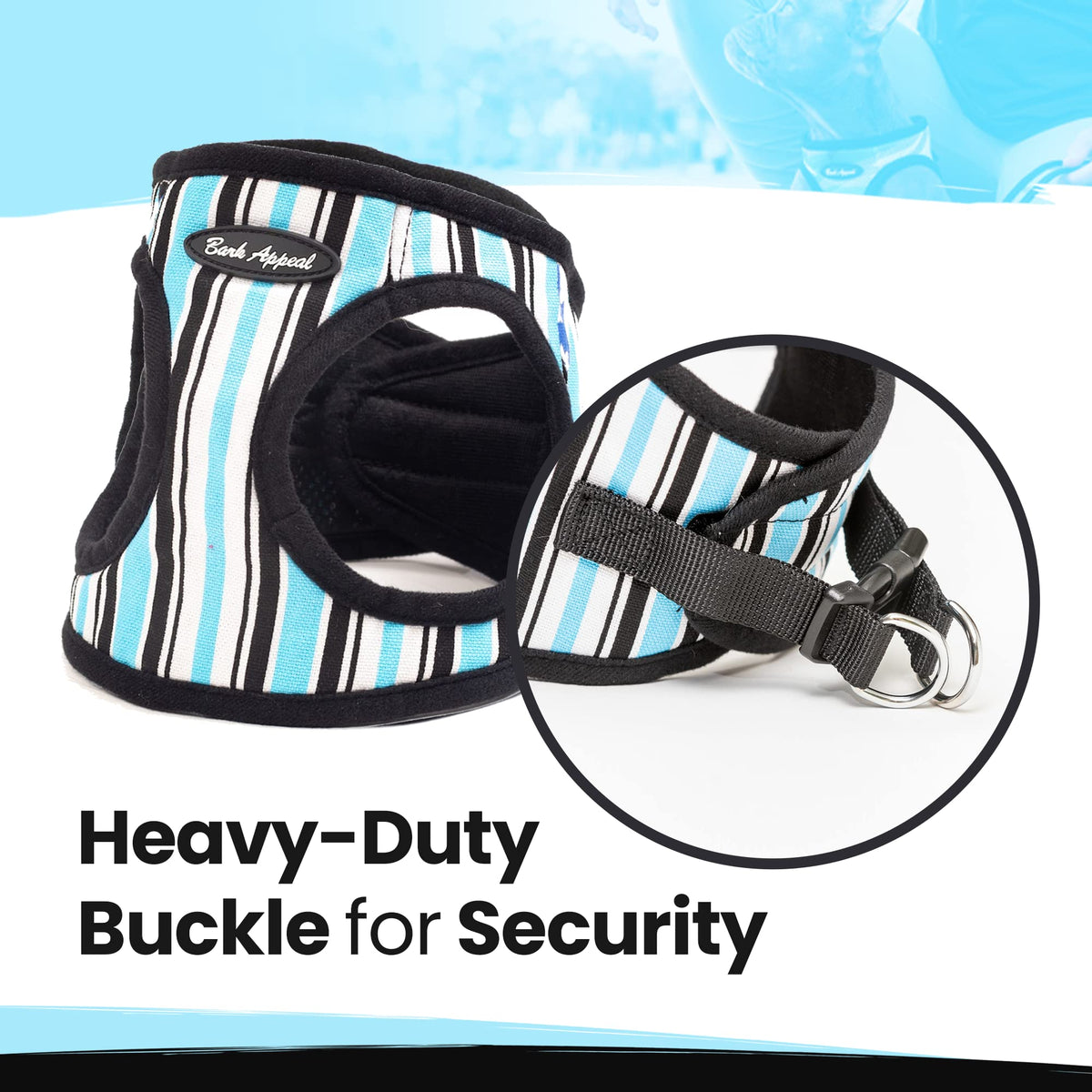 Bark Appeal Step-In Dog Harness, Mesh Step In Dog Vest Harness For Small & Medium Dogs, Non-Choking With Adjustable Heavy-Duty Buckle For Safe, Secure Fit - (Small, Blue Stripe)