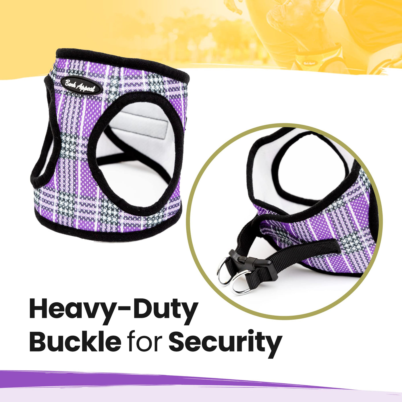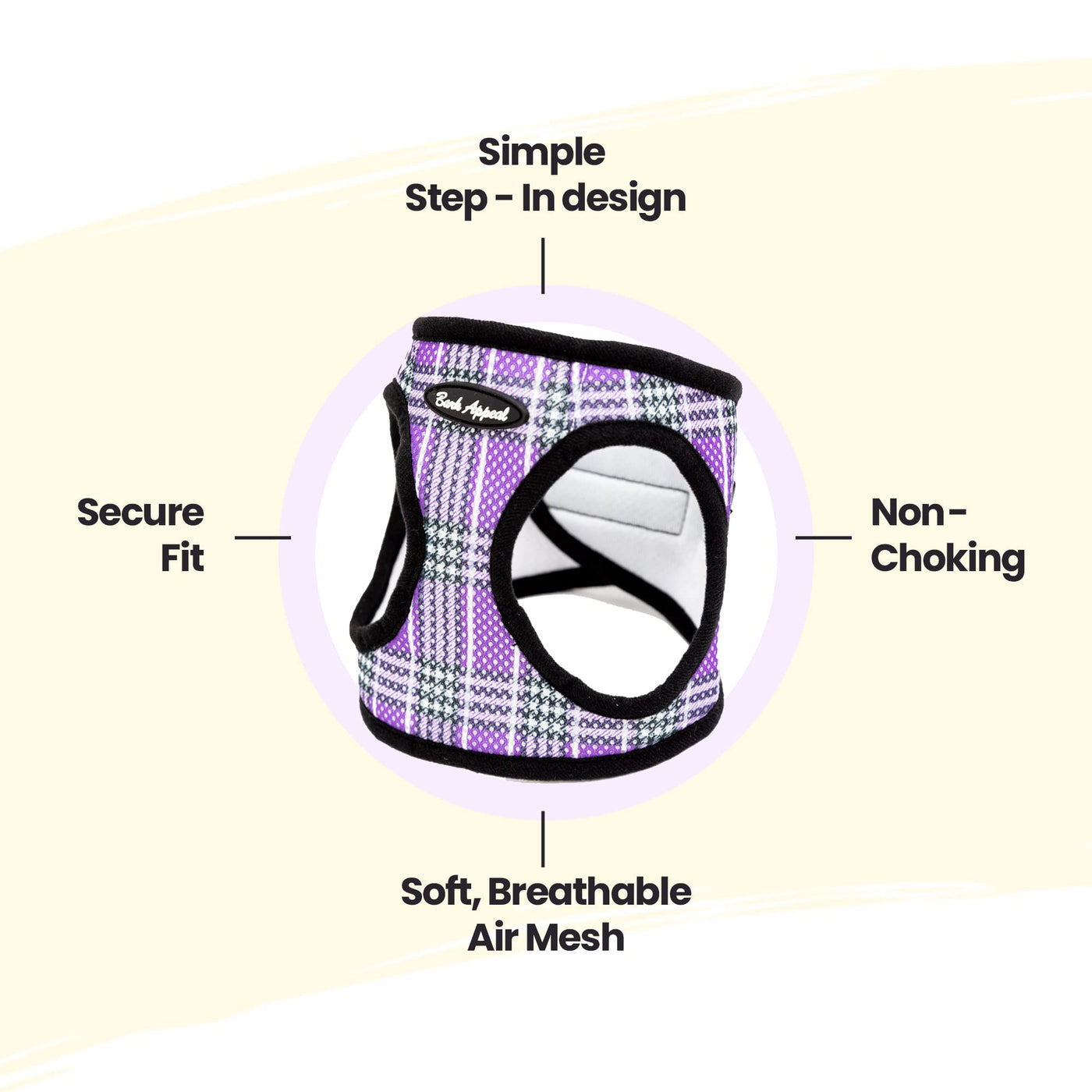 Bark Appeal Step-In Dog Harness, Mesh Step In Dog Vest Harness For Small & Medium Dogs, Non-Choking With Adjustable Heavy-Duty Buckle For Safe, Secure Fit - (Small, Lavender Plaid)