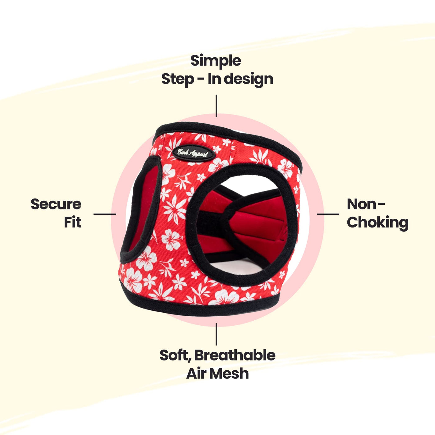 Bark Appeal Step-In Dog Harness, Mesh Step In Dog Vest Harness For Small & Medium Dogs, Non-Choking With Adjustable Heavy-Duty Buckle For Safe, Secure Fit - (Xl, Red Hibiscus)