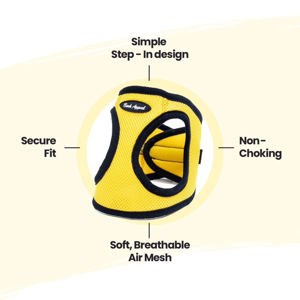 Bark Appeal Step-In Dog Harness, Mesh Step In Dog Vest Harness For Small & Medium Dogs, Non-Choking With Adjustable Heavy-Duty Buckle For Safe, Secure Fit - (Xxs, Yellow)