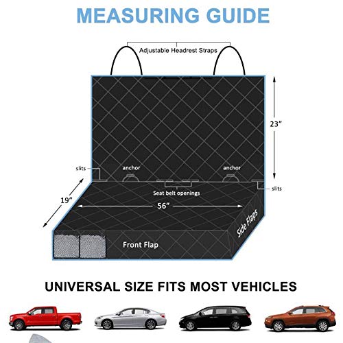 Made of quilted, heavy-duty advanced functional fabric, more durable - 5 times more than cotton twice as strong as 600D polyester, assuring an excellent durability and abrasion resistance to last a lifetime. This seat cover provides protection for your car backseats from dog hair, dirt, water, spills, stains and color-bleeding-while being comfy enough for any-length trip. Designed to fit the back seats of most cars, minivans, trucks and SUVs, it’s easy to install in just three simple steps-lay the cover on the seat, loop the straps around back headrests and adjust for a snug fit, push the anchors through the seat gaps and you’re all set! Plus, it features a non-slip mesh backing, handy 2 mesh storage pockets, 4 slits for three seat belt and child baby seat access.