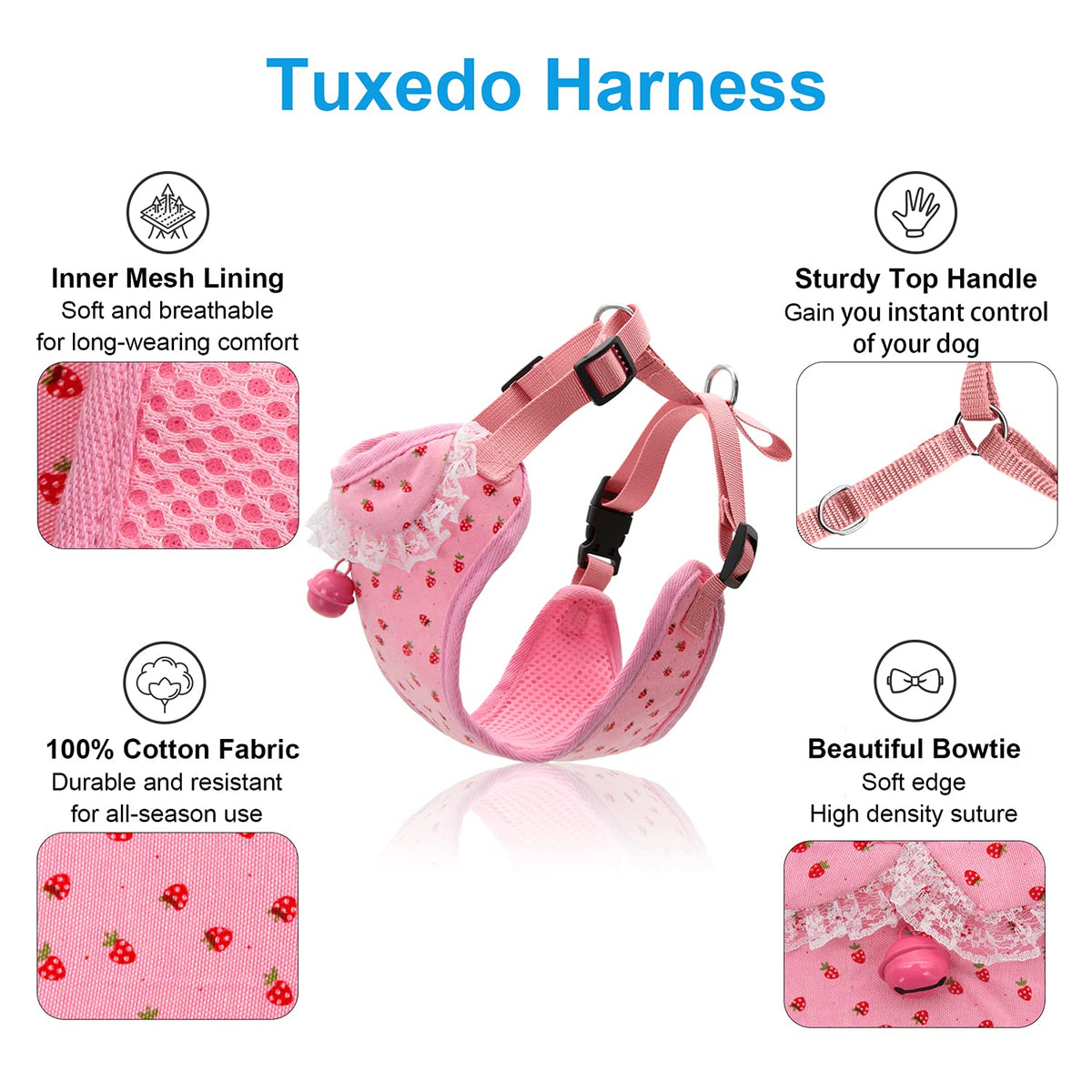 Bark Lover Small Puppy Harness With Bowtie, Adjustable Dog Vest Mesh Tuxedo Harness For Small Dog Kitten, Perfect For Party Wedd
