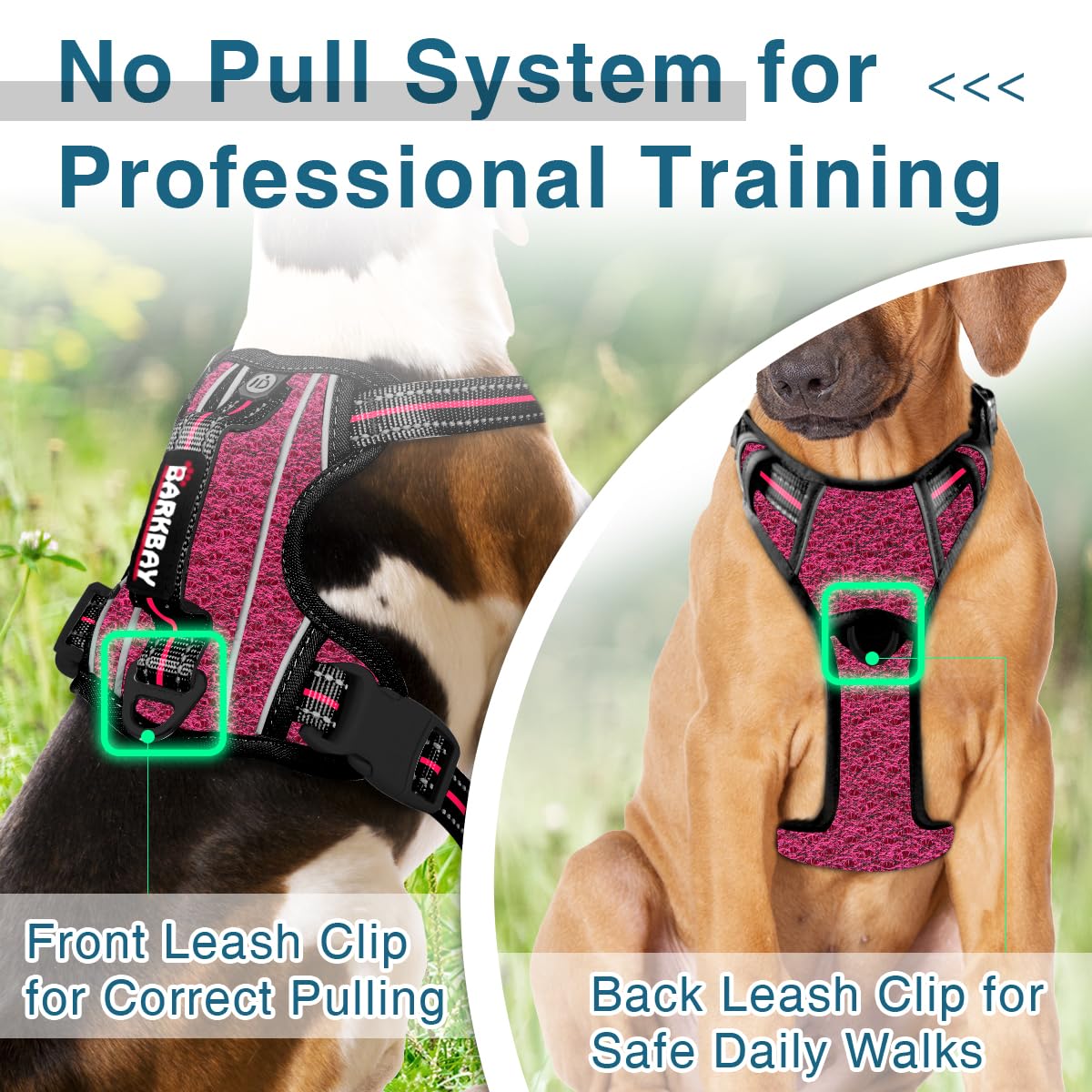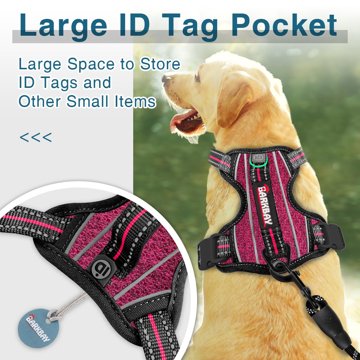 Barkbay Dog Harness No Pull With Id Tag Pocket - Heavy Duty, Reflective, Easy Control For Large Dogs (Pink/Black,L)
