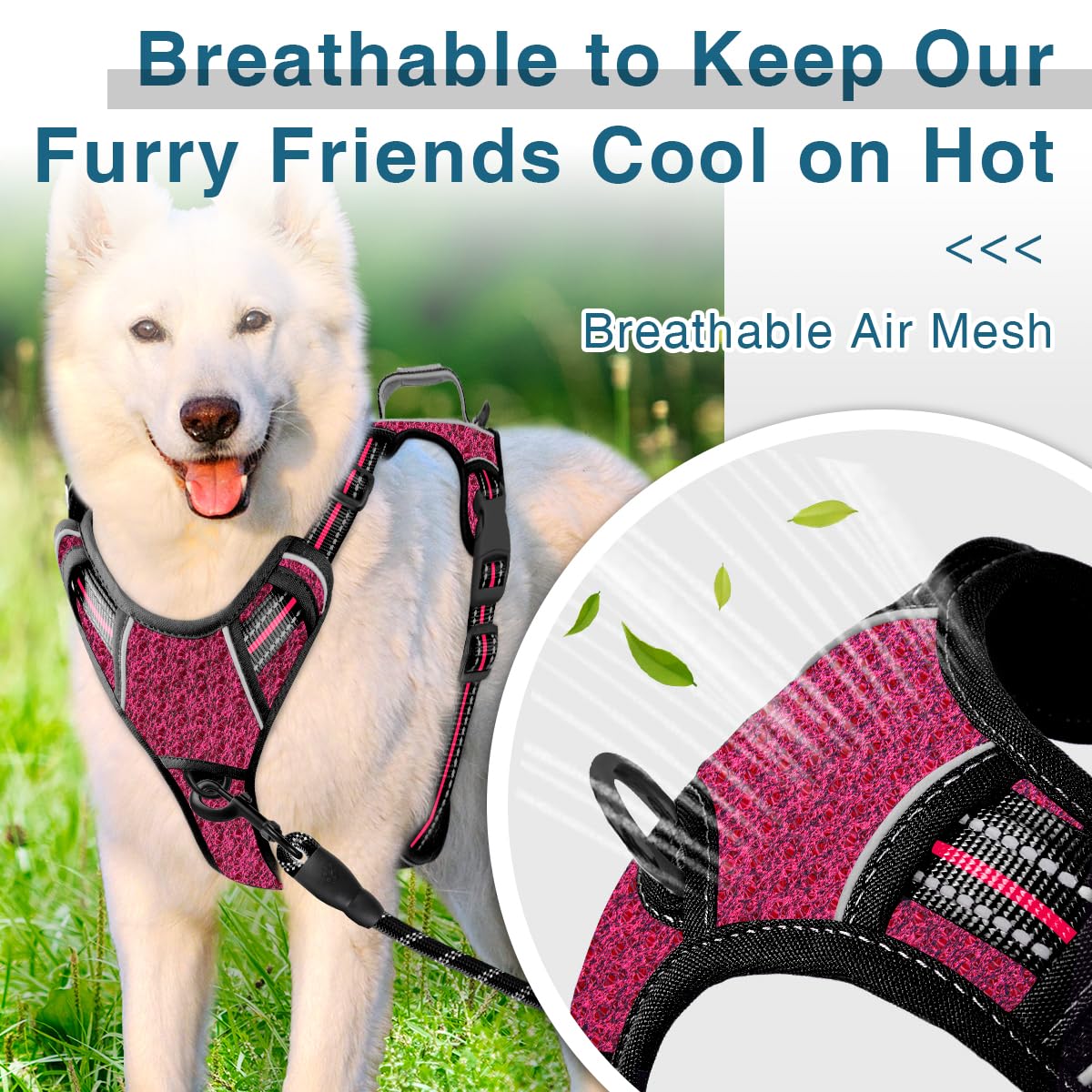 Our Air Mesh Dog Harness Is Designed To Ensure That Regardless Of The Conditions Outside, Youll Still Manage To Take Your Pet On Those Walks That Get Their Tail Wagging Like Crazy. We Use A Breathable Mesh Material To Keep Your Dog Or Pet Cool On Hot Days, While Also Providing Insulation For Those Chilly Occasions. It Will Be A Comfortable Walk For Your Furball! Unlike Leashes That Have The Tendency To Strain Your Pets Neck, This Safety Harness Distributes The Pressure Evenly Around The Chest, Preventing Any Kind Of Choking. No Pull Dog Harness- Helping The Dog Learn Not To Pull, Designed For The Strong Pulling Dog While You Work To Improve His On-Leash Behavior. Attaching The Leash To The Front Clip Attachment Is Whats Going To Prevent The Dog From Pulling When They Put Tension On The Leash The Harness Will Actually Start To Pull Your Dog Backward Towards You And That Makes It Very Awkward For Them It Doesnt Hurt Them It Just Make It A Little Bit Awkward So Theyre Not Going To Pull As Hard On The Leash Giving You A Lot More Control Over Them Easy To Put On-Is It Always A Struggle Trying To Get Your Pet In Most Harnesses? Well, Youll Love Just How Easy This Slide-Over Head Harness Is To Put On! Simply Slide Your Dogs Head Through The Dog Harness Neck Piece And Secures It With Buckles On Either Side Of His Chest