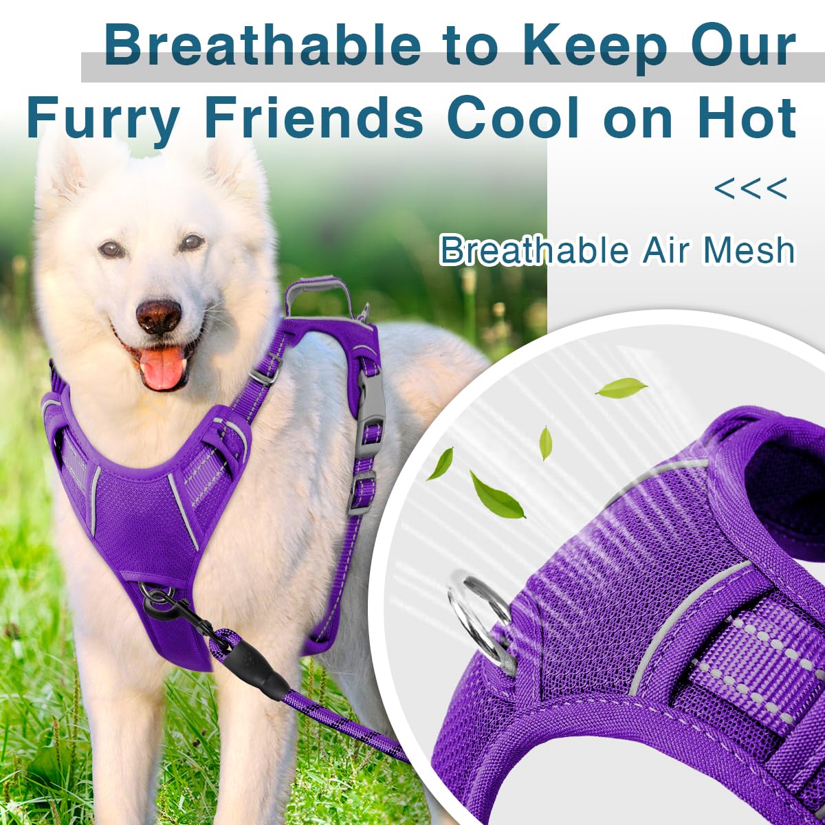 Barkbay Dog Harness No Pull With Id Tag Pocket - Heavy Duty, Reflective, Easy Control For Large Dogs (Purple,Xl)