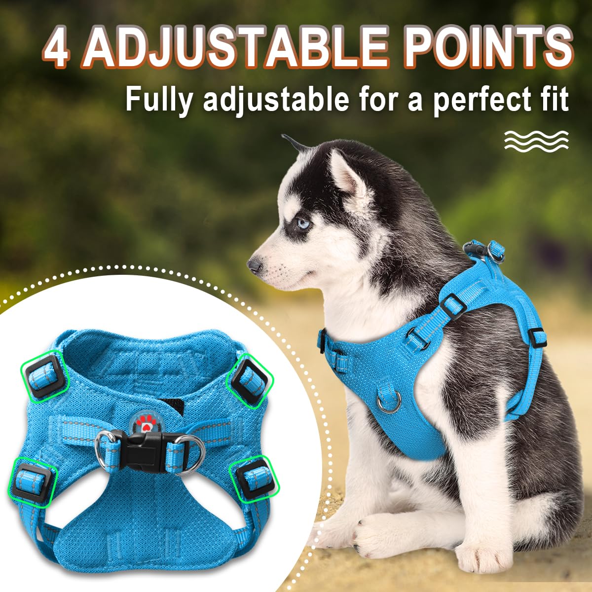 Barkbay Dog Harness, Reflective Adjustable Puppy No Pull Harness, Breathable Soft, Blue, Xxs