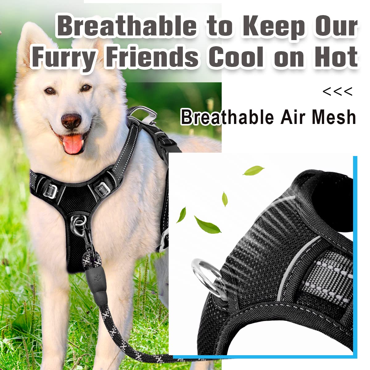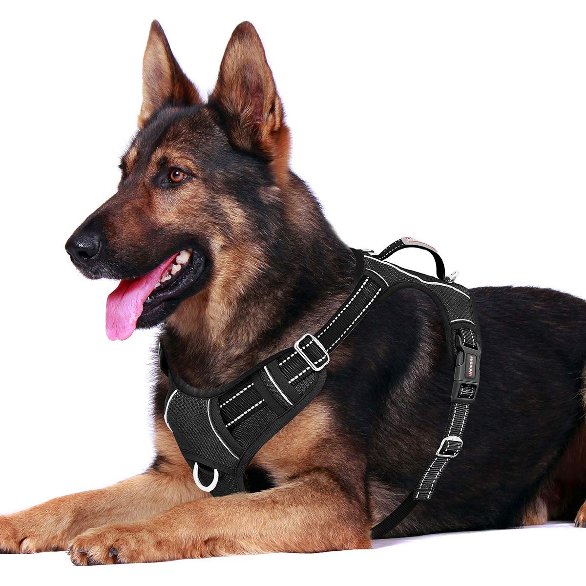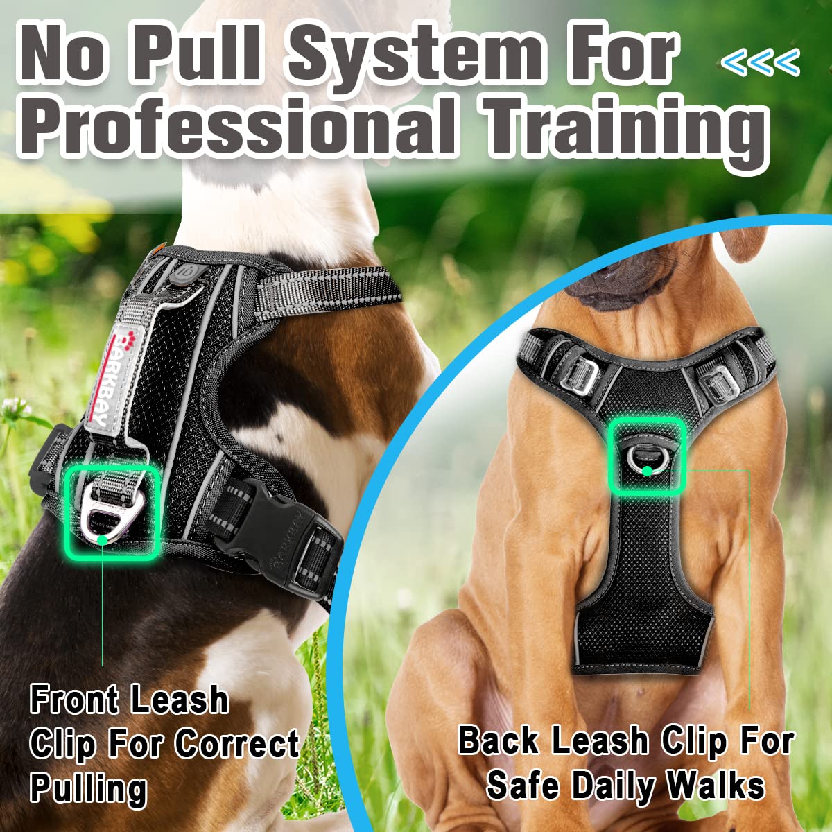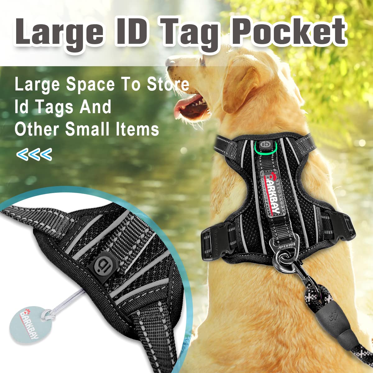 Barkbay No Pull Dog Harness Front Clip Heavy Duty Reflective Easy Control Handle For Large Dog Walking With Id Tag Pocket(Black,Xl)
