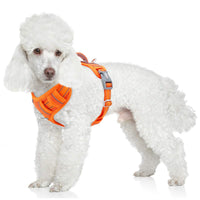 Q: Is the harness comfortable for my dog during walks?A: Yes, the harness is constructed from lightweight No Rip Nylon and features Anti-Chafe mesh padding, ensuring comfort for your dog. The design distributes pressure evenly across the chest, preventing choking and allowing for a pleasant walking experience.