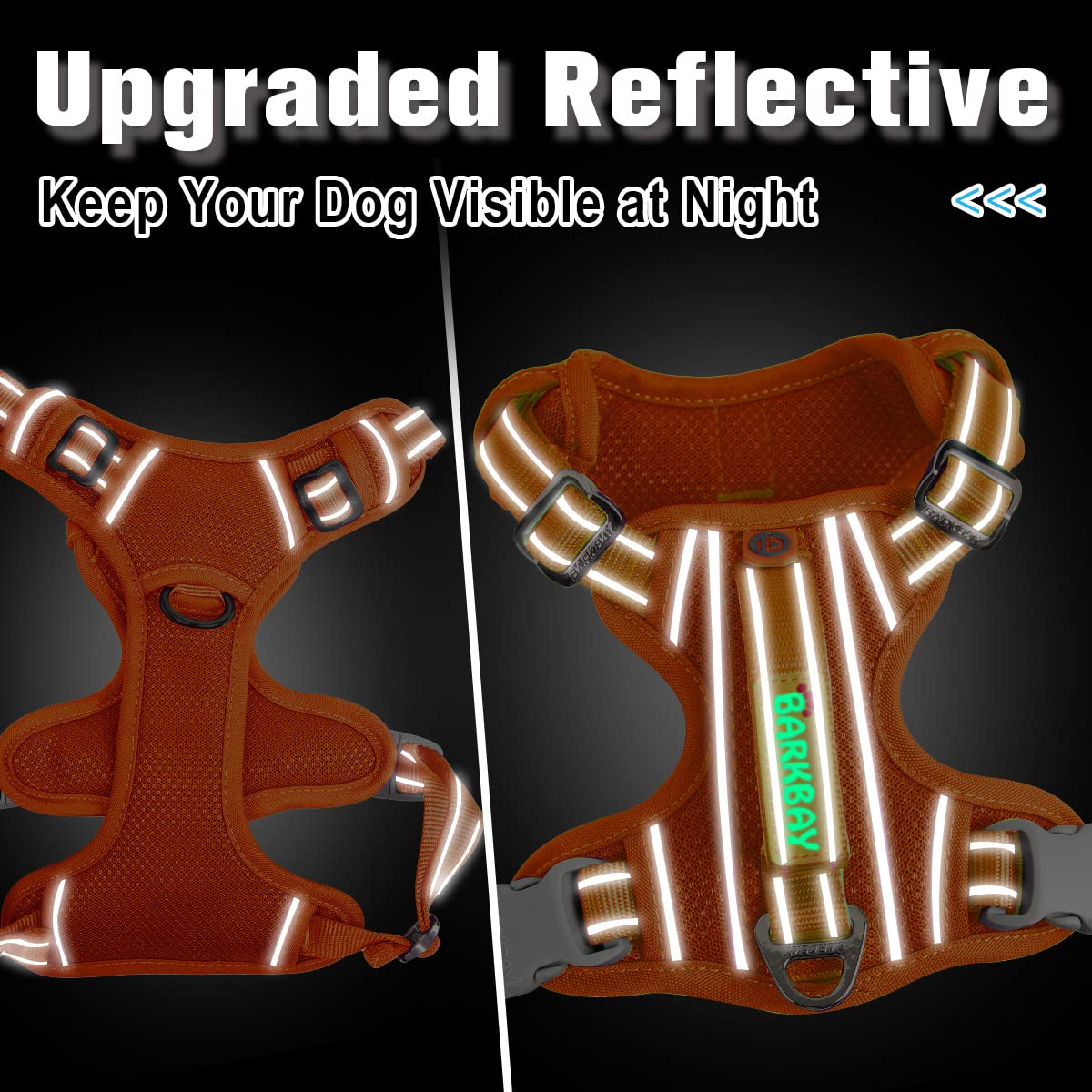 Barkbay No Pull Dog Harness Front Clip Heavy Duty Reflective Easy Control Handle For Large Dog Walking With Id Tag Pocket(Orange,S)