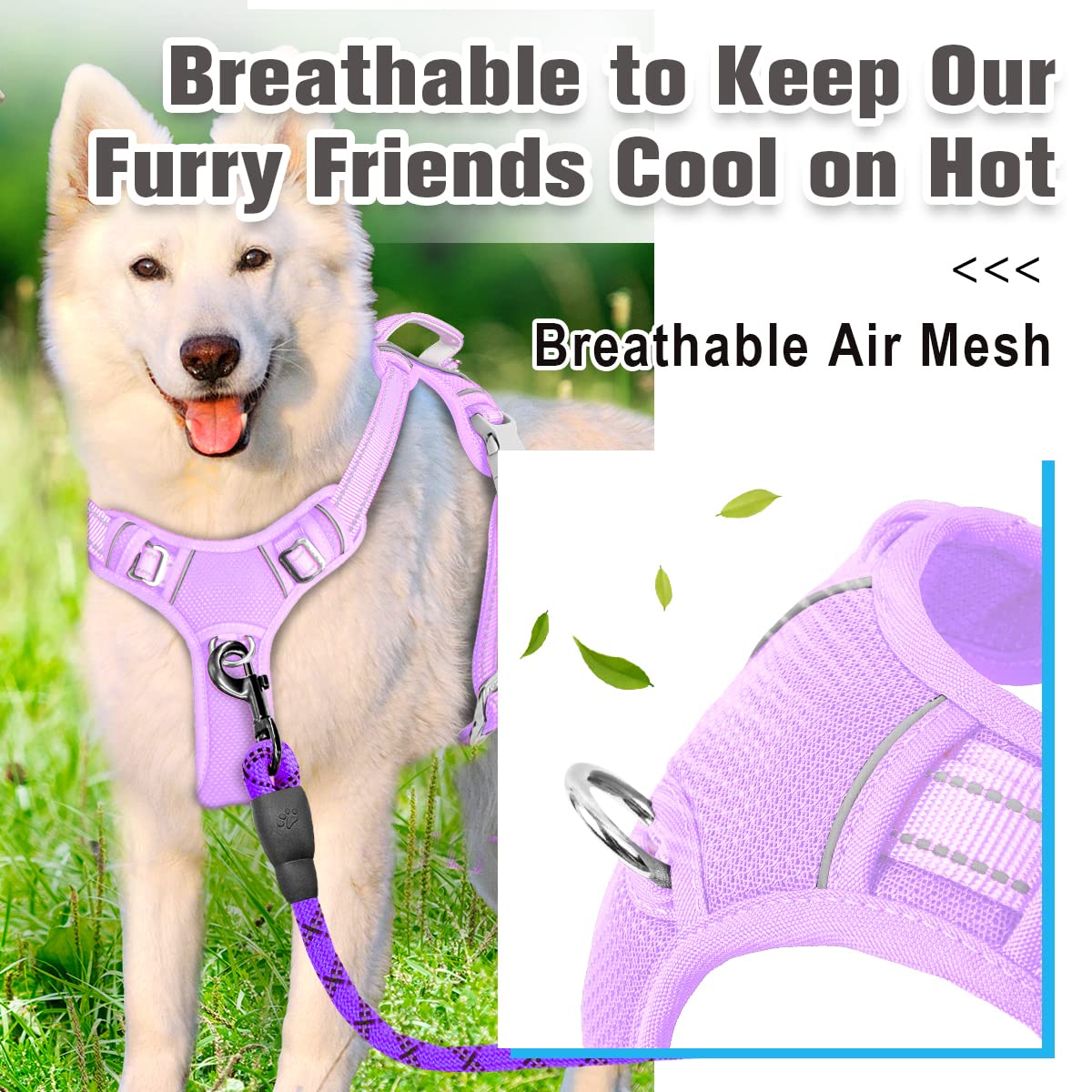 Barkbay No Pull Dog Harness Front Clip Heavy Duty Reflective Easy Control Handle For Large Dog Walking With Id Tag Pocket(Violet Purple,Xl)