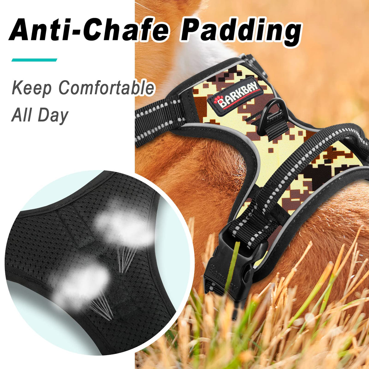 Barkbay No Pull Dog Harness Large Step In Reflective Dog Harness With Front Clip And Easy Control Handle For Walking Training Running(Desert Camo,S)
