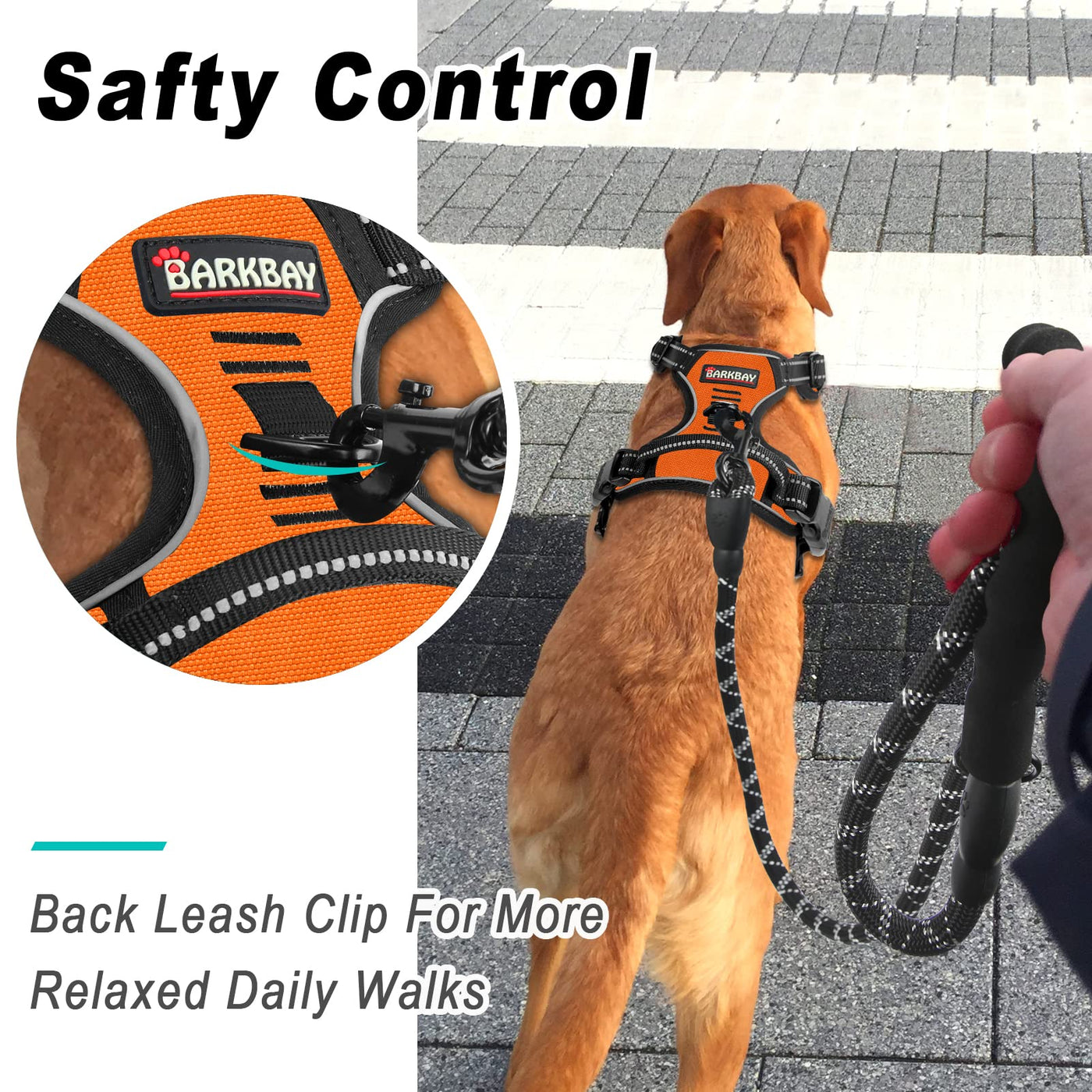 Q: How does the reflective feature enhance safety during nighttime walks?A: The BARKBAY harness includes reflective stitching along the straps and harness, which enhances visibility in low-light conditions. This feature is essential for keeping your dog safe during nighttime walks, ensuring they are easily seen by others.