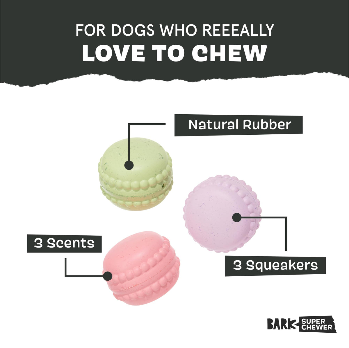 Meet Macaruffs: A M Nage Paw Of Tough Toys To Savor! This Delightful Three-Part Rubber Macaroon Dog Toy Is Perfect For Pups Who Love Variety. Each Macaruff Features A Unique Color, Squeaker, And Scent-Strawberry, Lavender, And Peanut Butter-All Made With Non-Allergenic Oils. Whether Your Dog Loves To Fetch, Chew, Or Simply Savor The Squeaky Fun, These Tough Pastry Treats Are Sure To Please. Toss Them Around And Watch Your Pup Retrieve With Joy. Parlez-Vous Great For Fetching? A Few Things To Keep In Mind, S'Il Vous Plat: This Toy Is Spot-Clean Only And Bpa-Free. Perfectly Suited For Small Dogs Who Enjoy A Little French Flair In Their Playtime.