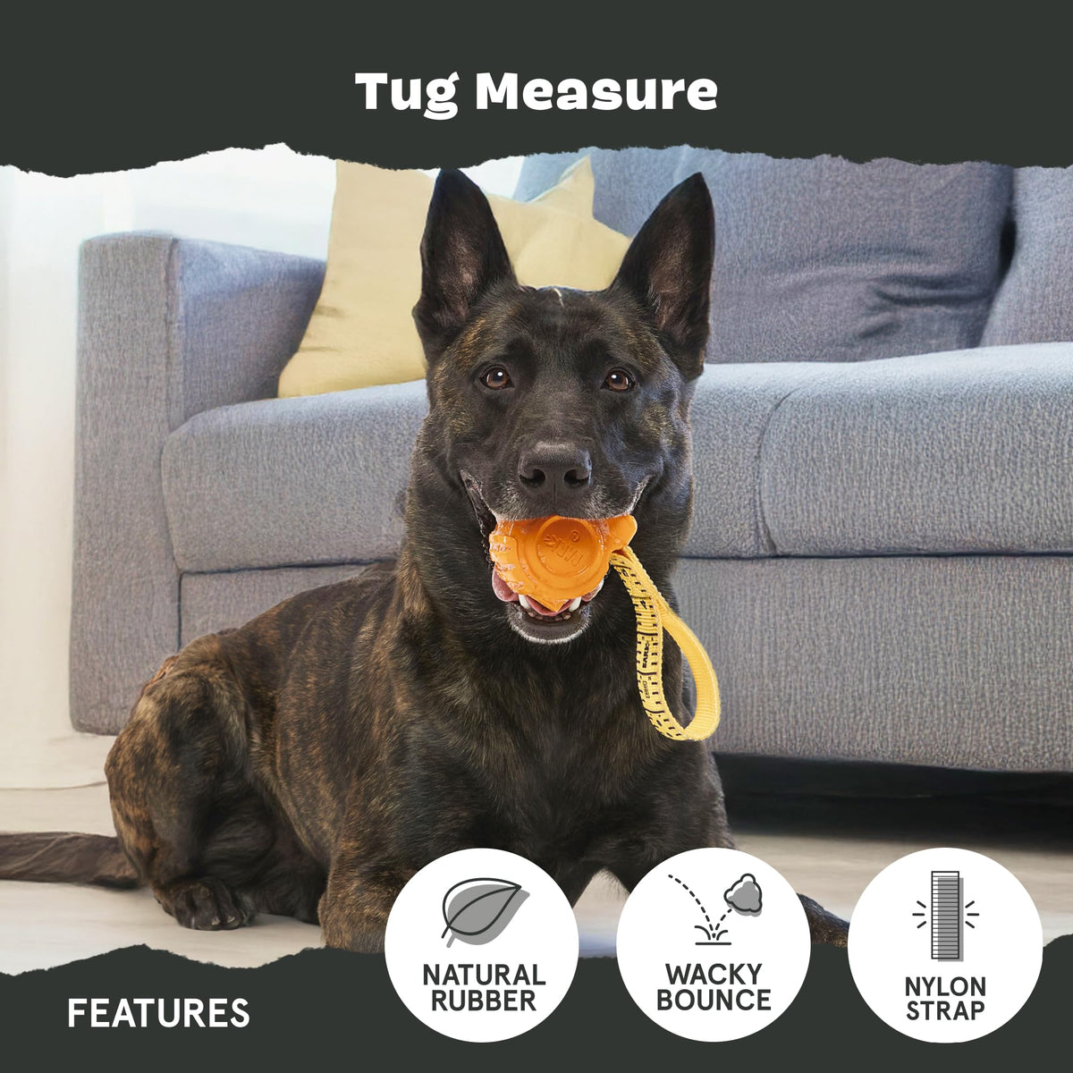 Meet Tug Measure: This Tough Tape Measuring Dog Toy Is Sure To Be A Huge Home (And Playtime) Improvement! The Reinforced Nylon Strap Is Perfect For Tossing And Tugging-And Its Also An Honest-To-Goodness Functional Measuring Tool With A To-Scale Print That Can Accurately Measure Anything... As Long As It'S Shorter Than The Strap! Made Of Durable Natural Rubber, Tug Measure Features A Wacky Bounce-Perfect For Tossing, Spinning, And Rolling For Endless Fun. Ideal For Large Dogs, Tug Measure Is Bpa-Free And Should Be Spot Cleaned Only.
