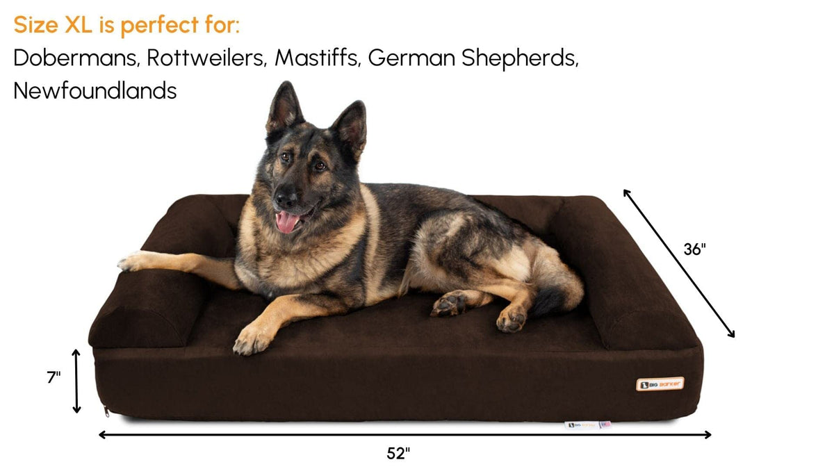 Barker Beds Extra Large Dog Sofa Bed (Xl, Chocolate) - 7'' Thick Soft & Comfortable Orthopedic Cushion - Durable Extra Large Dog