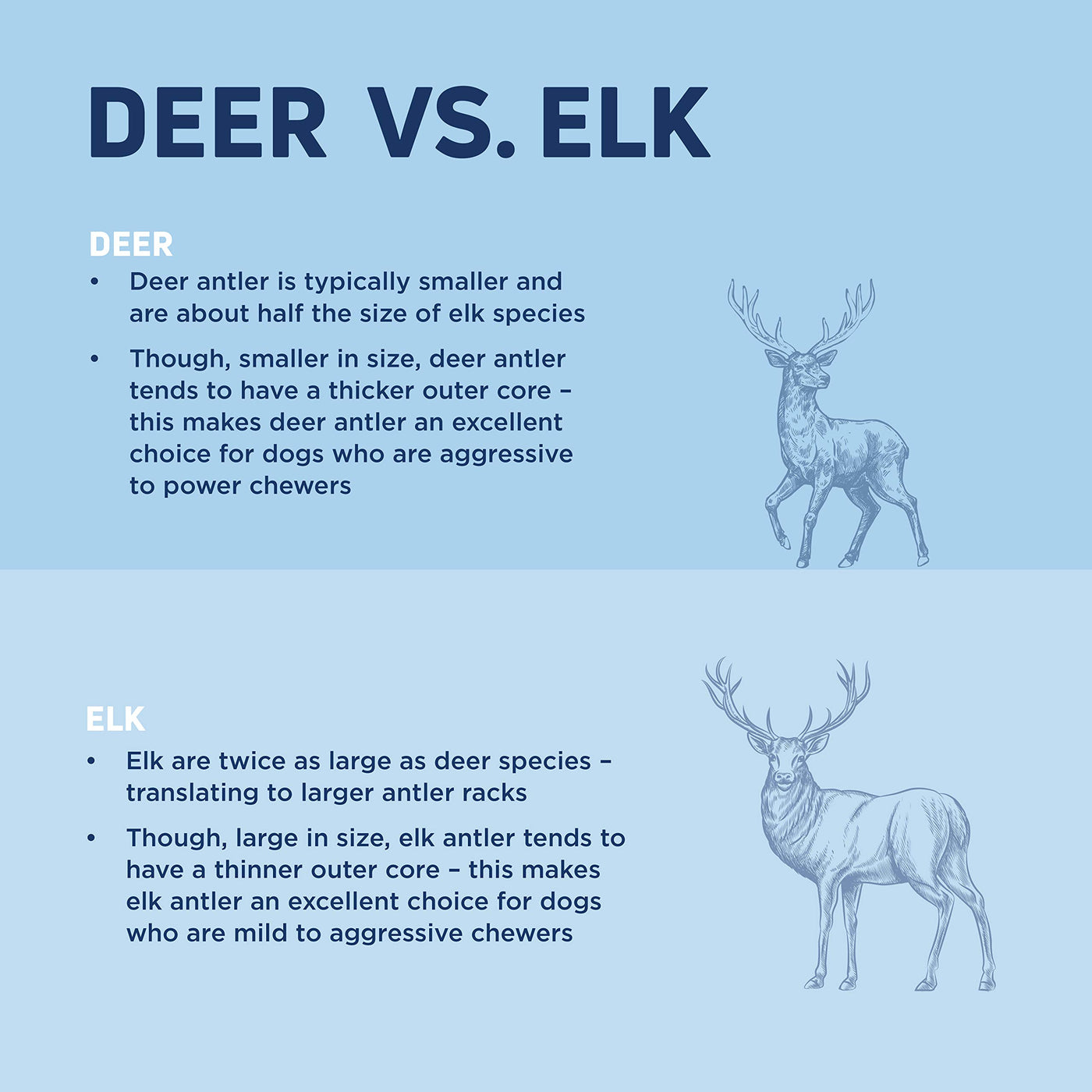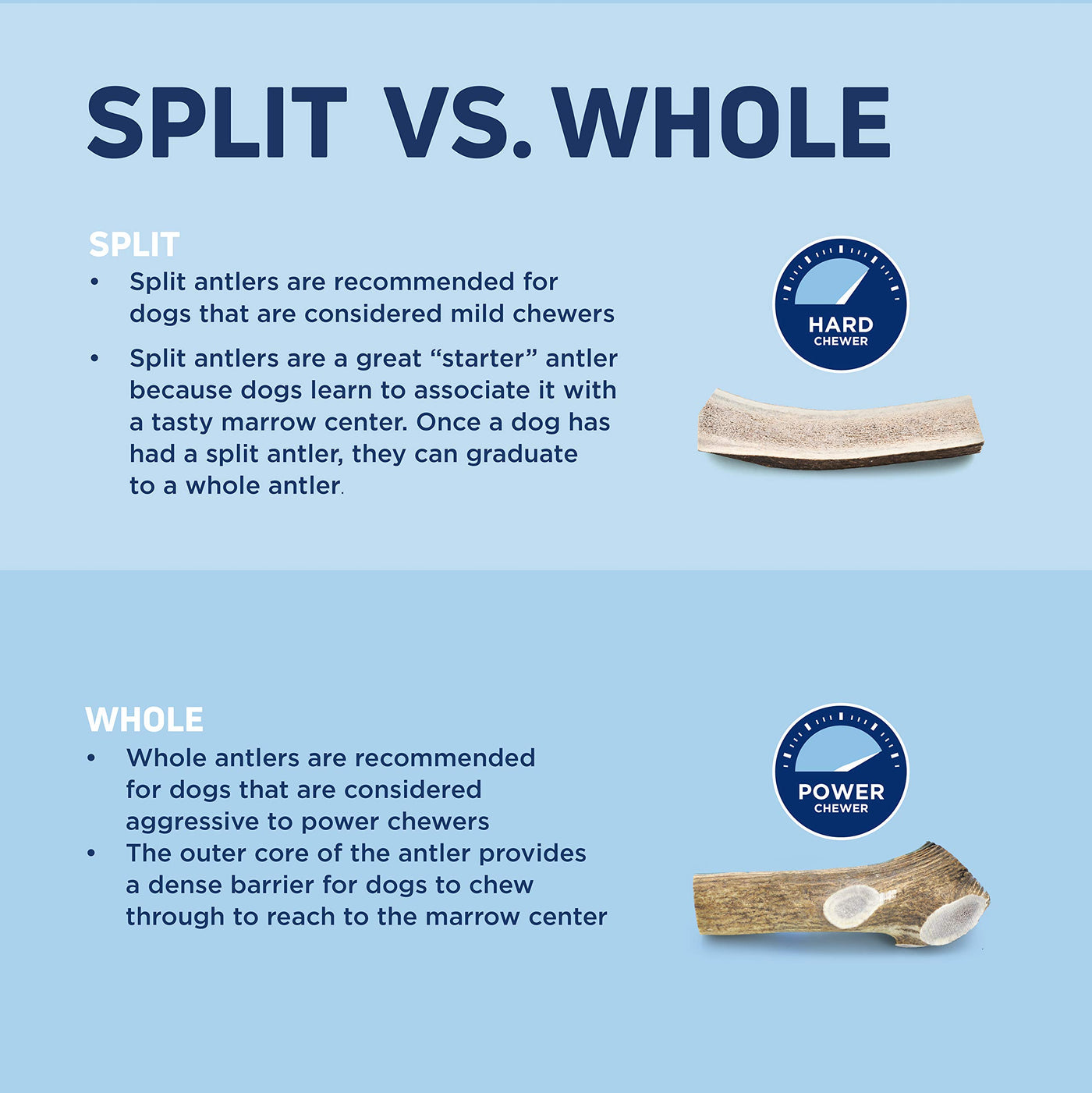Experience The Barkworthies Difference At Barkworthies We Embrace That Dogs Are Natural Born Chewers. We Also Know That Wholesome Nutrition Is Essential To A Dogs Health And Happiness. Thats Why We Responsibly Source Only Genuine, Nutrient-Rich, And Deliciously Satisfying Chews From The Finest Regions Around The World. Our High-Quality Standards Ensure Every Chew Is Exactly How Nature Intended - Simple And Wholesome, For A Healthy And Happy Dog.Natural And Responsibly Sourced Were Committed To Finding The Finest Ingredients For Your Pet. Thats Why When You Look At The Ingredients On The Bag, Youll Only See One: Premium Naturally Shed Deer Antler. Naturally Roaming Deer Shed Their Antlers Yearly, Which Are Simply Collected, Hand Selected, And Cut To A Premium Size Perfect For Your Dog.Prioritize Safety Barkworthies Knows That Safety Is The Top Priority For Dog Owners Which Is Why We Revitalized The Way Owners Choose Their Dog Chews. Our Brand-New Antler Program Breaks Down Our Product Offerings According To Dog Size And Chewing Power For A Longer, Safer, And Healthier Chewing Experience.Split Vs Whole Antlers Are The Best All-Natural Long-Lasting Chew, But Each Dog Has Their Own Chewing Type. Split Antlers Are Perfect For Dogs Who Are Considered Medium To Hard Chewers, For Puppies And Senior Dogs With Weaker Teeth, Or For Training Your Dog To Chew Safely. With The Delicious Marrow Center Exposed, Dogs Will Begin To Associate The Antler With The Treat Inside. Dogs Who Are More Aggressive Power Chewers Can Graduate To A Whole Antler, Which Will Challenge Them Even More To Reach The Delicious Marrow Core They Crave.Elk Vs Deer Choosing The Right Antler For Your Dog Starts With Choosing The Best Species. Elk And Deer, While Similar, Have Many Differences In Antlers. Elk Are A Larger Species, And Therefore Have Larger Antler Racks Than Deer. Whole Elk Antlers Have A Thinner Outer Core Encasing The Marrow Than Whole Deer Antlers, Perfect For Hard To Power Chewers.