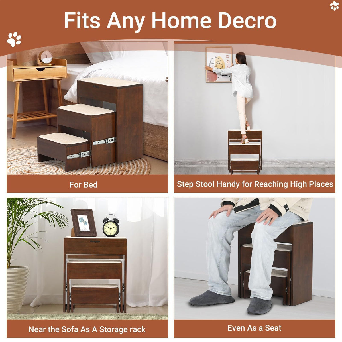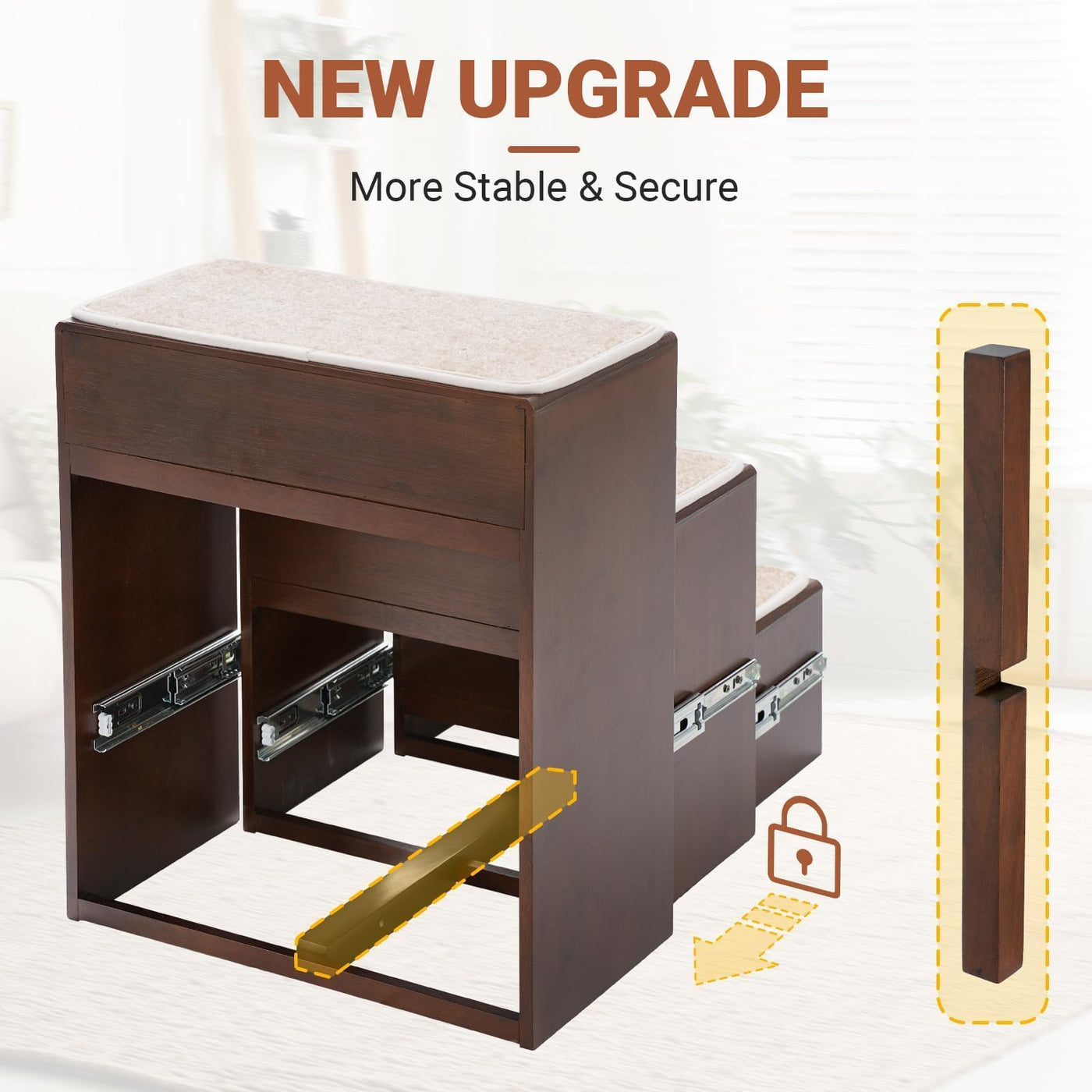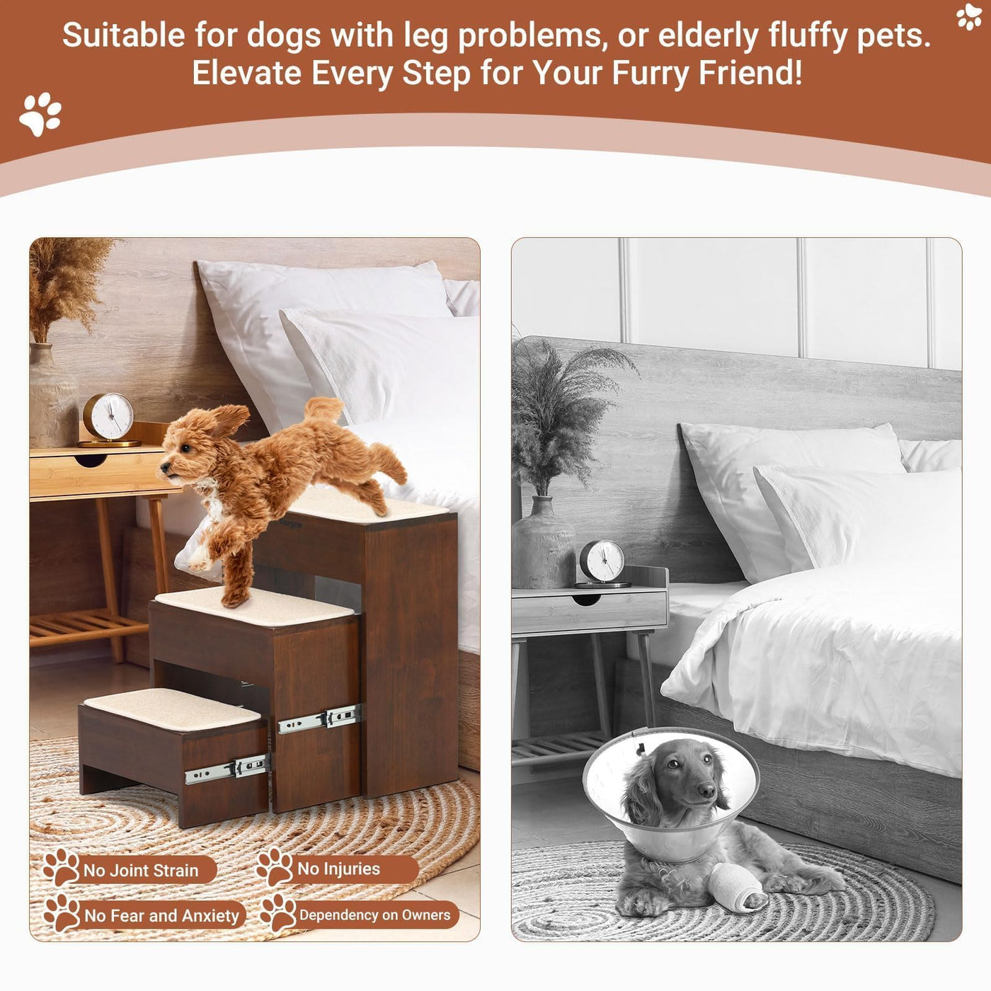 P>Barpor Dog Stairs To Bed Wooden 21.2 Inches Height Storage Pet Steps For Small Dogs Non-Slip Sturdy Pet Ladders For Couch Supports To 200 Lbs Multifunctional Furniture, No Need To Install, Brown More Stable And Secure: New Accessory Ensure That The Ladder Will Not Slide During Use!Built Strong With A 200Lbs Loading Capacity, These Stairs Prioritize Safety. The Soft Padded Fixed Mat Ensures A Cozy Climb Without Slips. Your Pet'S Safety Is Our Top Priority. Elevate Your Pet'S Experience:&Nbsp; 21 Inches High With 3 Steps, Our Pet Stairs Are Tailor-Made For Your Furry Friend To Reach Their Favorite Spots - Beds, Sofas, And Couches. Give Them The Luxury They Deserve! Instant Setup, Easy Storage:&Nbsp; No Installation Headaches! These Stairs Are Foldable And Storage-Friendly. Effortless Convenience For Both You And Your Pet. Not Just For Pets, For Masters Too:&Nbsp; These Stairs Aren'T Just For Your Pets. Need To Reach High Places? They'Ve Got You Covered! A Versatile Addition To Your Household For Both Pets And Masters. Style Meets Function:&Nbsp; Versatility Is Our Middle Name! These Stairs Seamlessly Blend With Any Decor Style, Adding A Touch Of Elegance To Your Home. Make A Statement While Providing Practicality. Customer Support: &Nbsp;Your Satisfaction Is Our Priority. In Case Of Any After-Sales Concerns Or Questions, Please Reach Out To Us Promptly Through Amazon. Our Dedicated Customer Support Team Is Ready To Assist You, Ensuring A Hassle-Free Experience With Our Pet Elevating Stairs.
