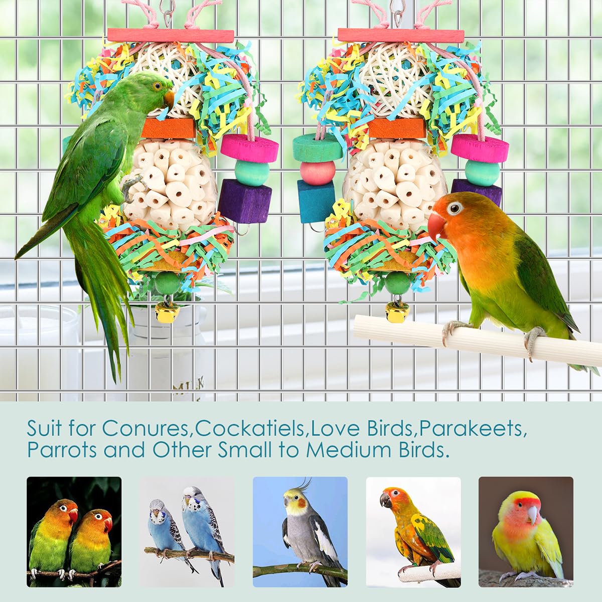 Bird Toys,2PCS Conure Toys Hanging Natural Soft Sola Ball Beak Chew Shred Forage Toys for Parrots,Cockatiel,Conure,Love Birds,Parakeets,Budgie and Other Small Birds