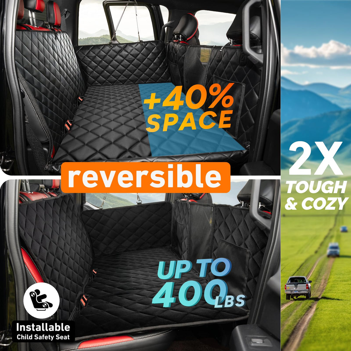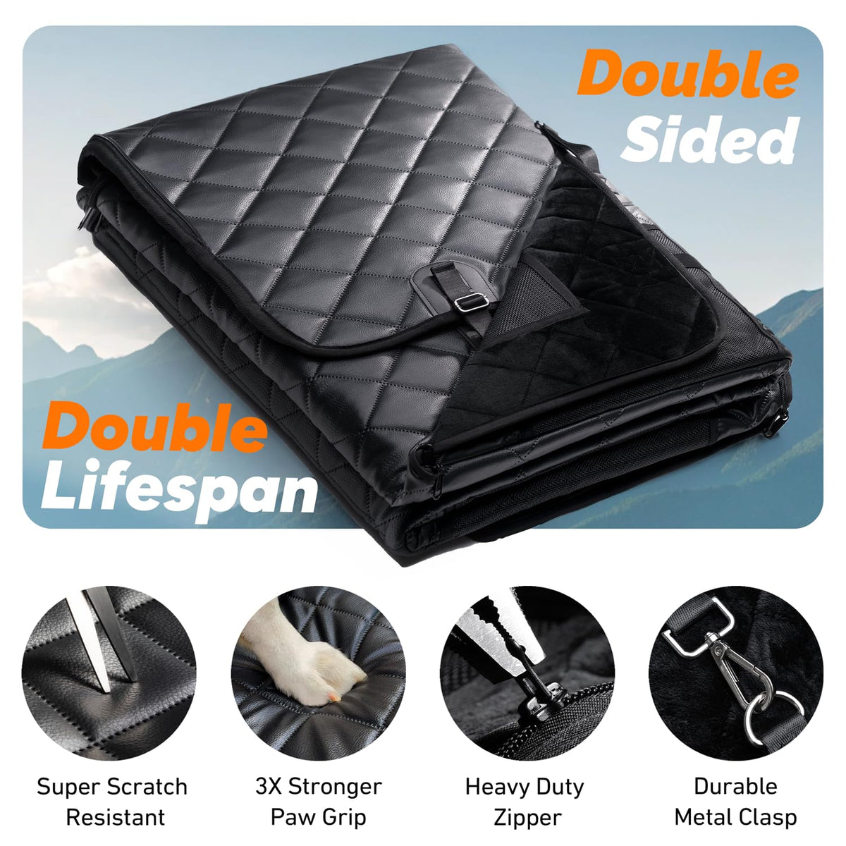 Bearcover Back Seat Extender For Dogs, Waterproof Pet Car Seat Cover, Xl Leather + Plush Rear Seat Protector With Hard Bottom, N