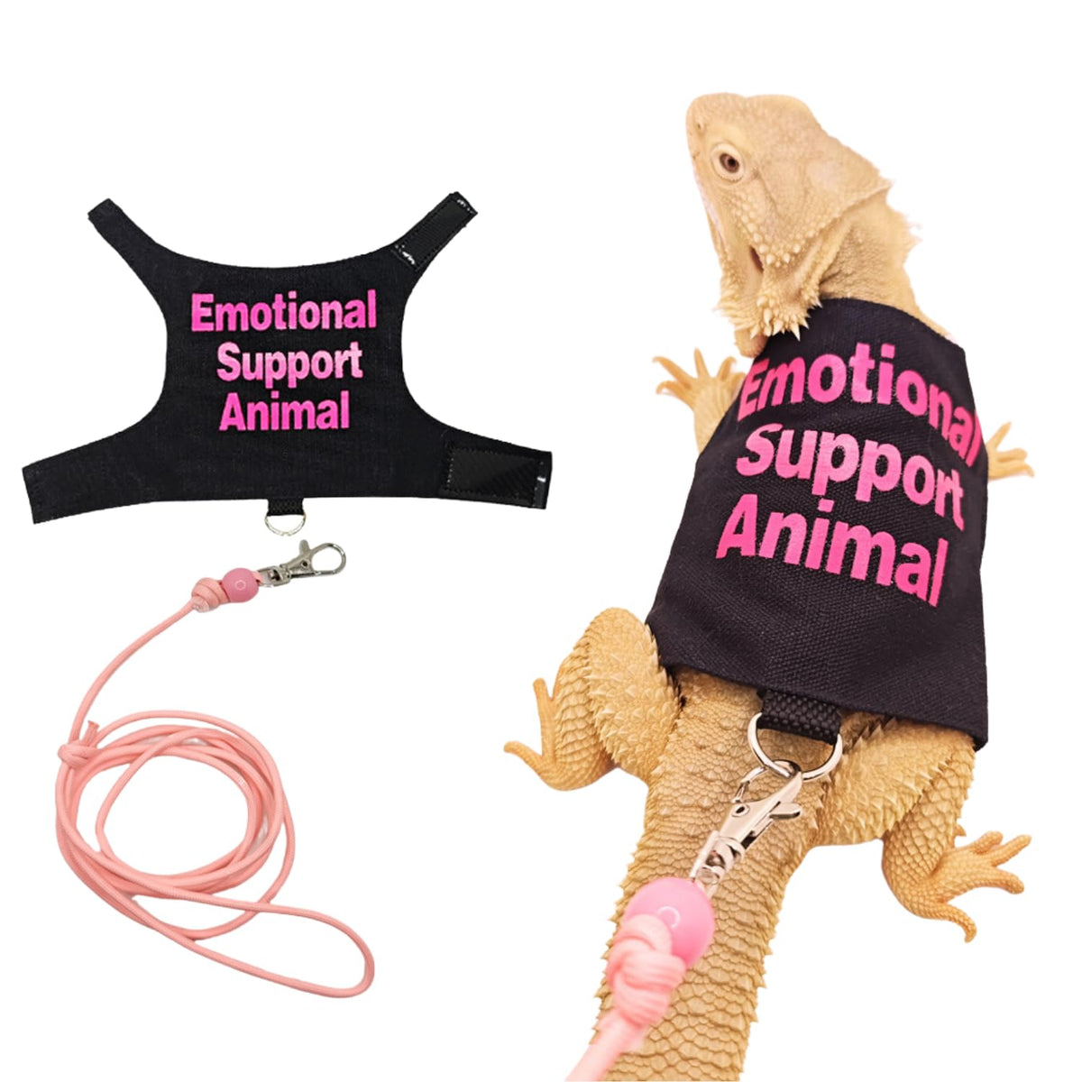 Description: Sezdeki Bearded Dragon Harness And Leash Set - Lizard Clothes For Bearded Dragon Emotional Support Animal Costume Perfect For Halloween Gift,Dress Up, Taking Photos Or Attending Parties. Make Your Pet Dragon Become The Focus Of Attention. Stylish Design:&Quot;Emotional Support Animal&Quot; Is Printed On The Back Of This Harness. The Letters On The Back Of The Shirt Are Not Easy To Fall Off Because Of The Upgraded Glue Pressing Technology. This Greatly Increases The Durability Of The Bearded Dragon Costume. Application: For Bearded Dragons,Chameleon, Gecko,Iguana. And Also Some Other Small Animals Like Ferrets, Guinea Pigs,Rats, Hedgehogs,Kittens... Easy To Clean: It Can Be Machine Washed Or Hand Washed, Hot Dried Or Air Dried, Very Convenient To Take Care Of. Specification: Material: Polyester Size: Harness: Neck Circumference : 4.5&Quot;-7.9&Quot;;Chest Circumference : 6.5&Quot;-10&Quot;;Back Length:4.5'' Leash Length: 4.76 Ft Package Includes: 1* Bearded Dragon Harness With &Quot;Emotional Support Animal &Quot; Print 1* Leash Note: *Please Measure The Size Of Your Pets Correctly Before Placing Order. *Due To Lighting Effect, Monitor'S Brightness, Manual Measurement And Etc, There Could Be Some Slight Differences In The Color And Size Between The Photo And The Actual Item.