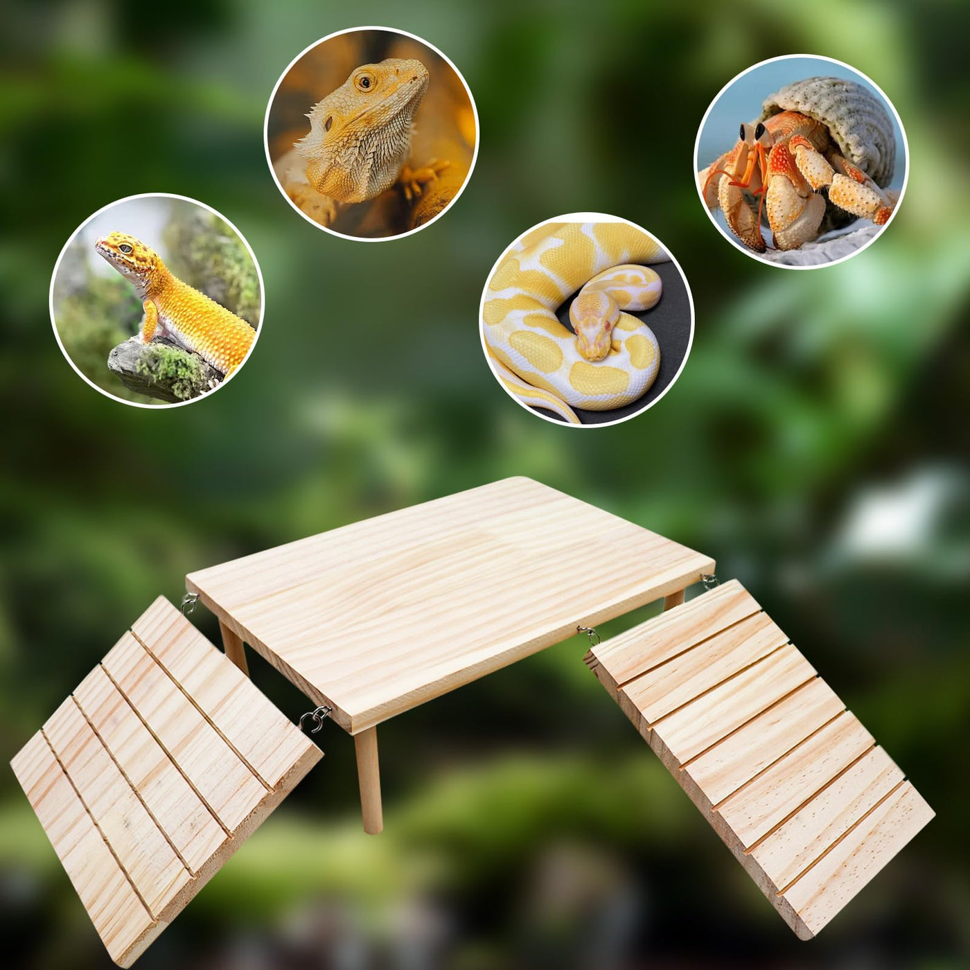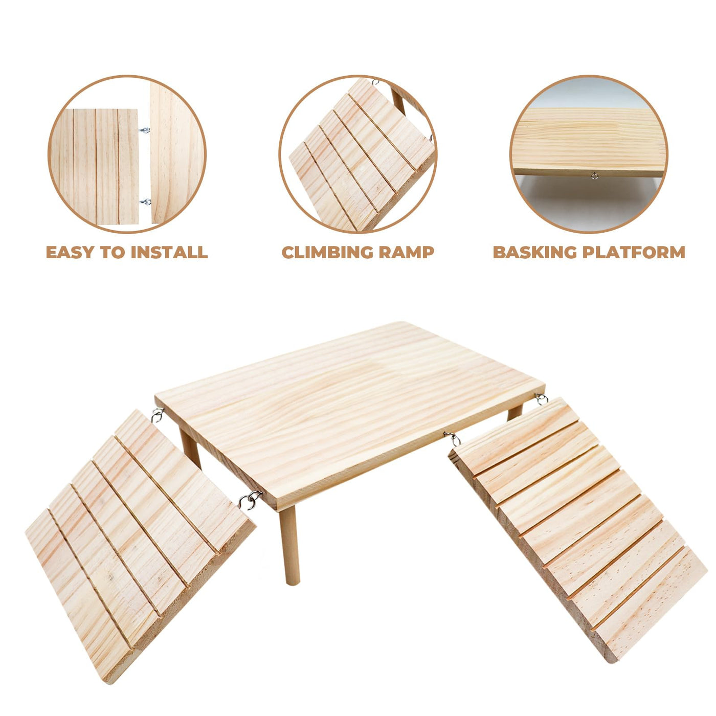 Bearded Dragon Tank Accessories, Wooden Basking Platform with Ramp, Reptile Basking Platform, Reptile Habitat Accessories for Be