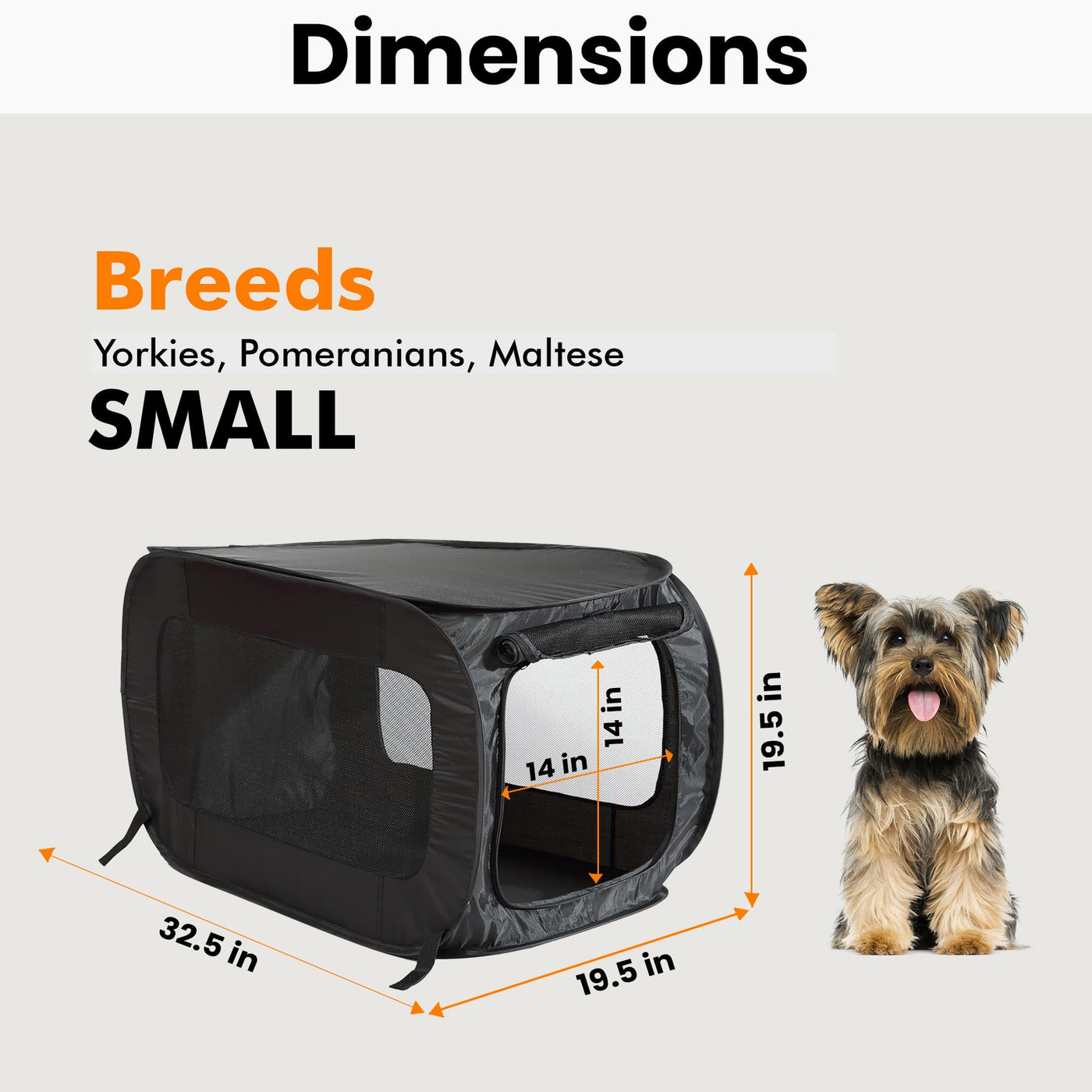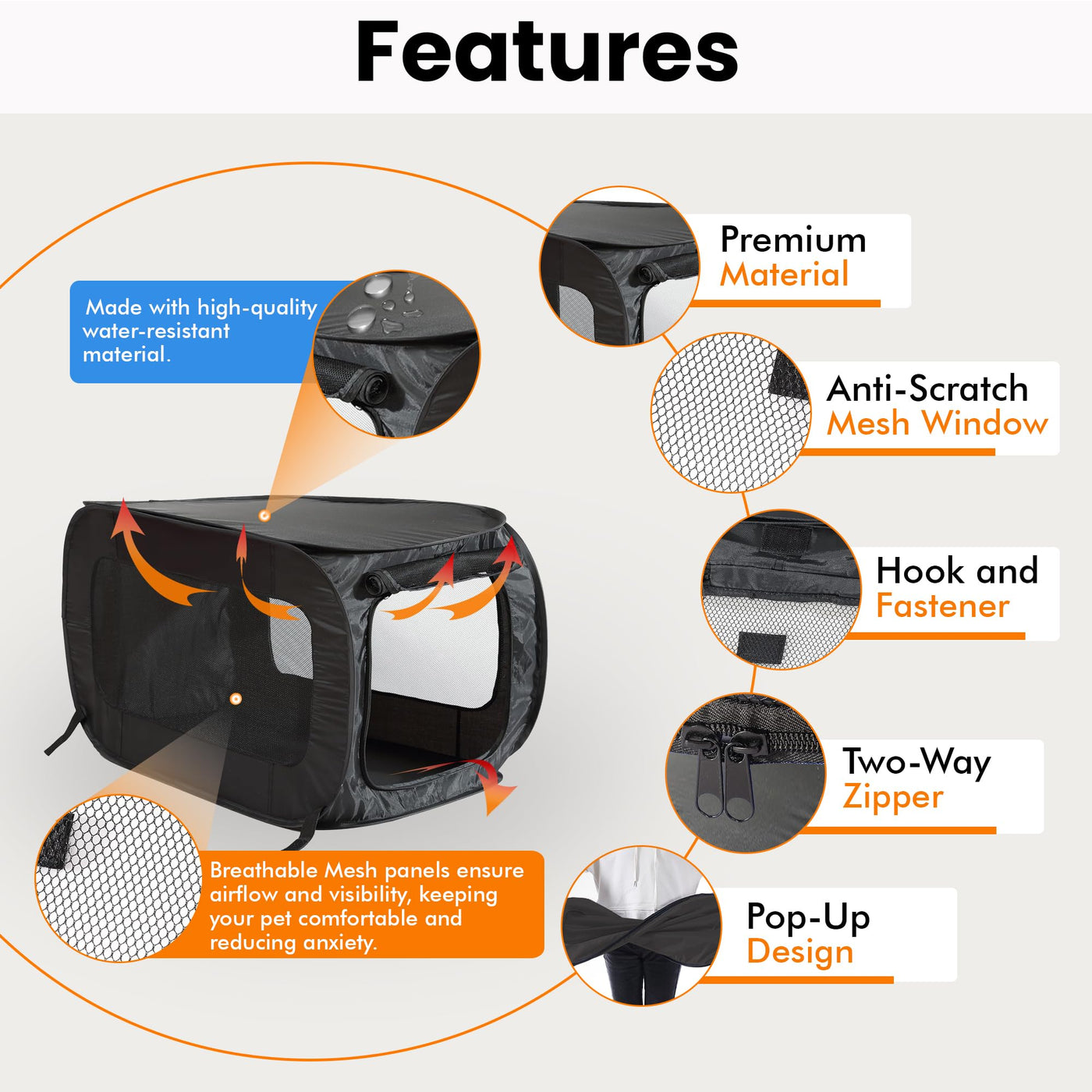 Beatrice Home Fashions Portable, Collapsible, Pop Up Kennel Travel Cat and Dog Crate, 32.5 L x 19.5 W x 19.5 H, Black