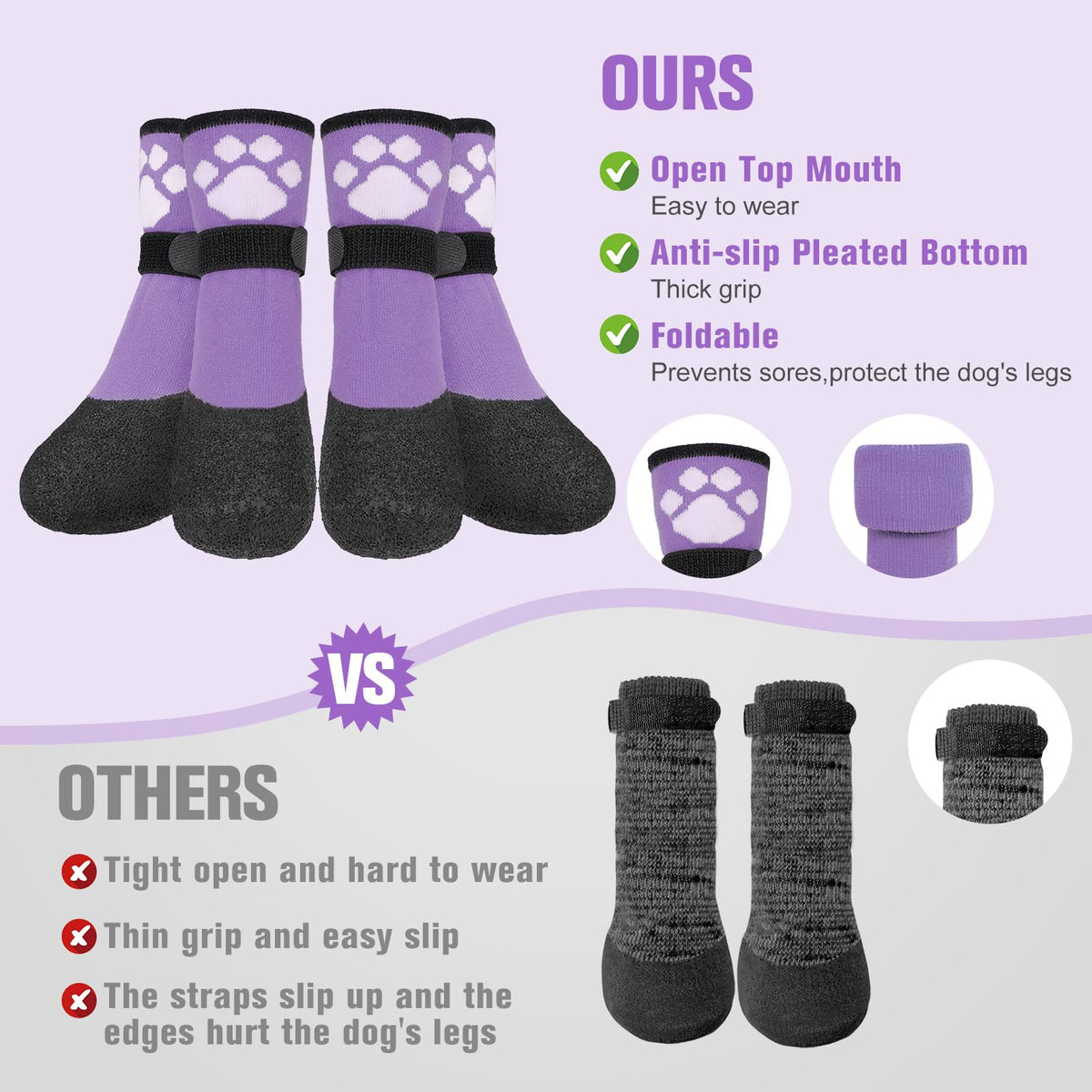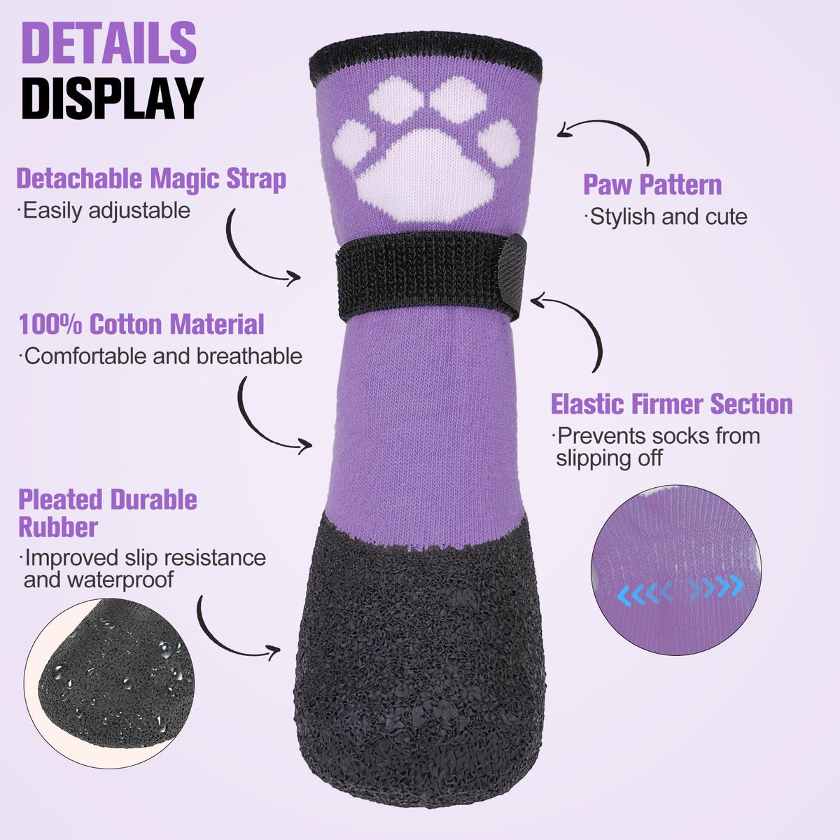 Beautyzoo Anti Slip Dog Socks Boots, Dog Shoes For Hot/Cold Pavement Snow Rain Days,Waterproof Grip Dog Booties Paw Protector Fo