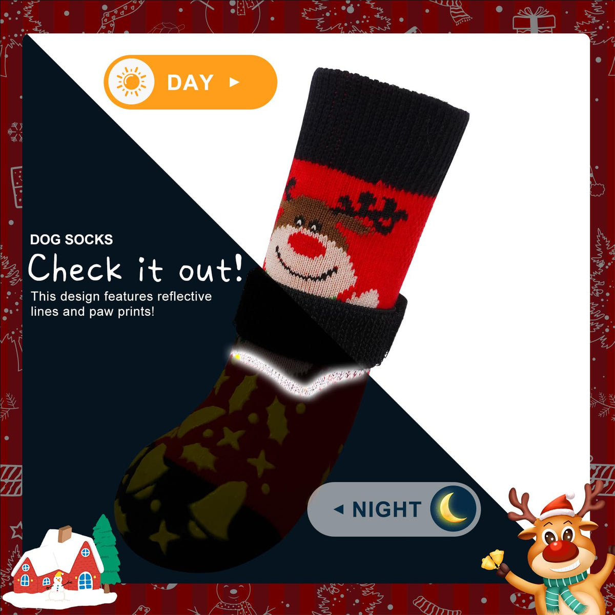 Beautyzoo Christmas Dog Socks To Prevent Licking Paws, Hardwood Floors Anti Slip, Non Slip Dog Socks With Grippers Dog Paw Prote