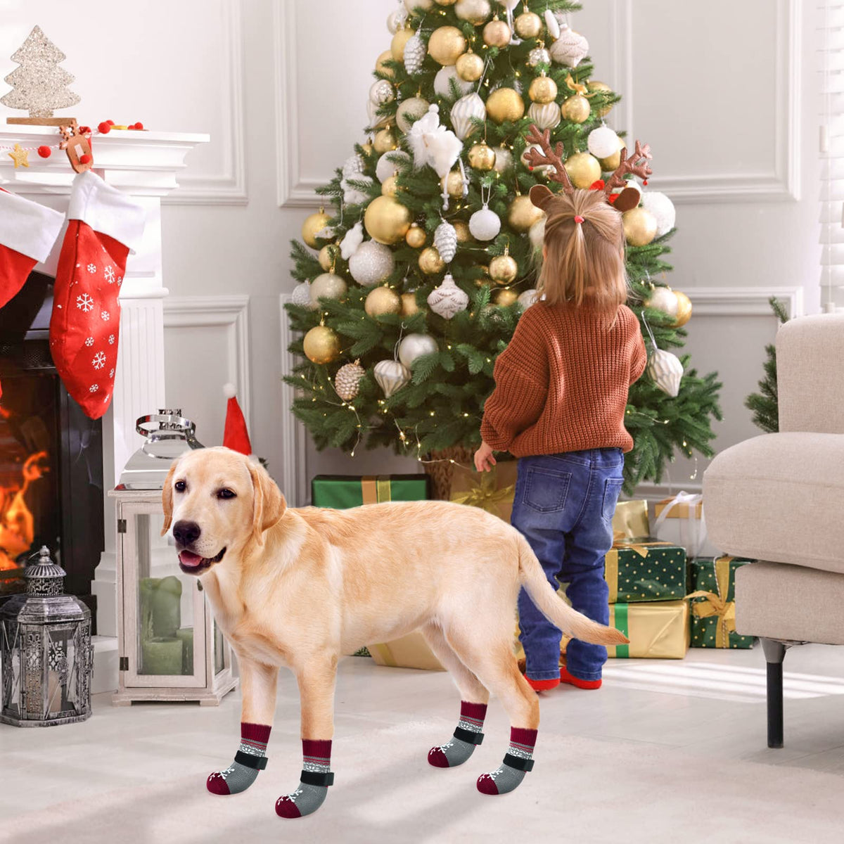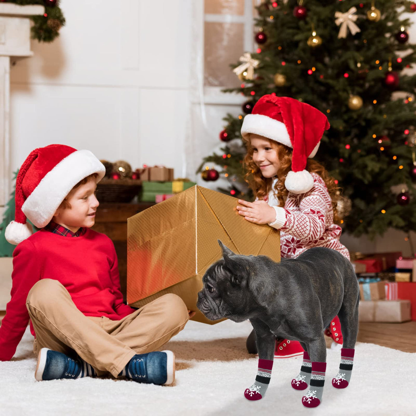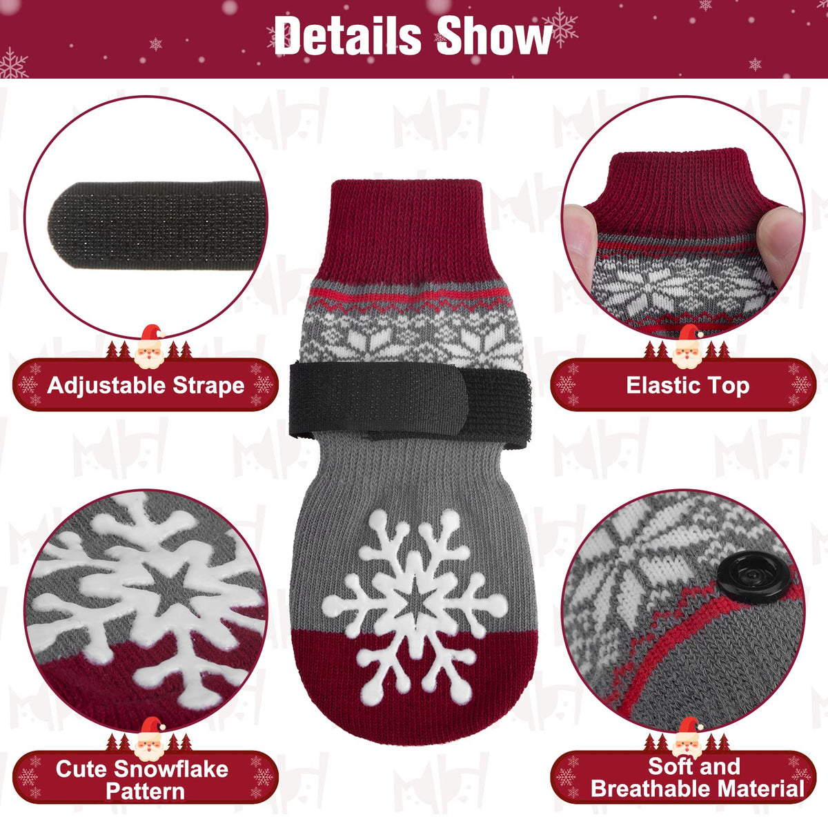 Q: What material are these dog socks made from?A: The BEAUTYZOO Christmas Winter Anti-Slip Dog Socks are crafted with quality materials that ensure comfort and durability, although specific material details are not provided.