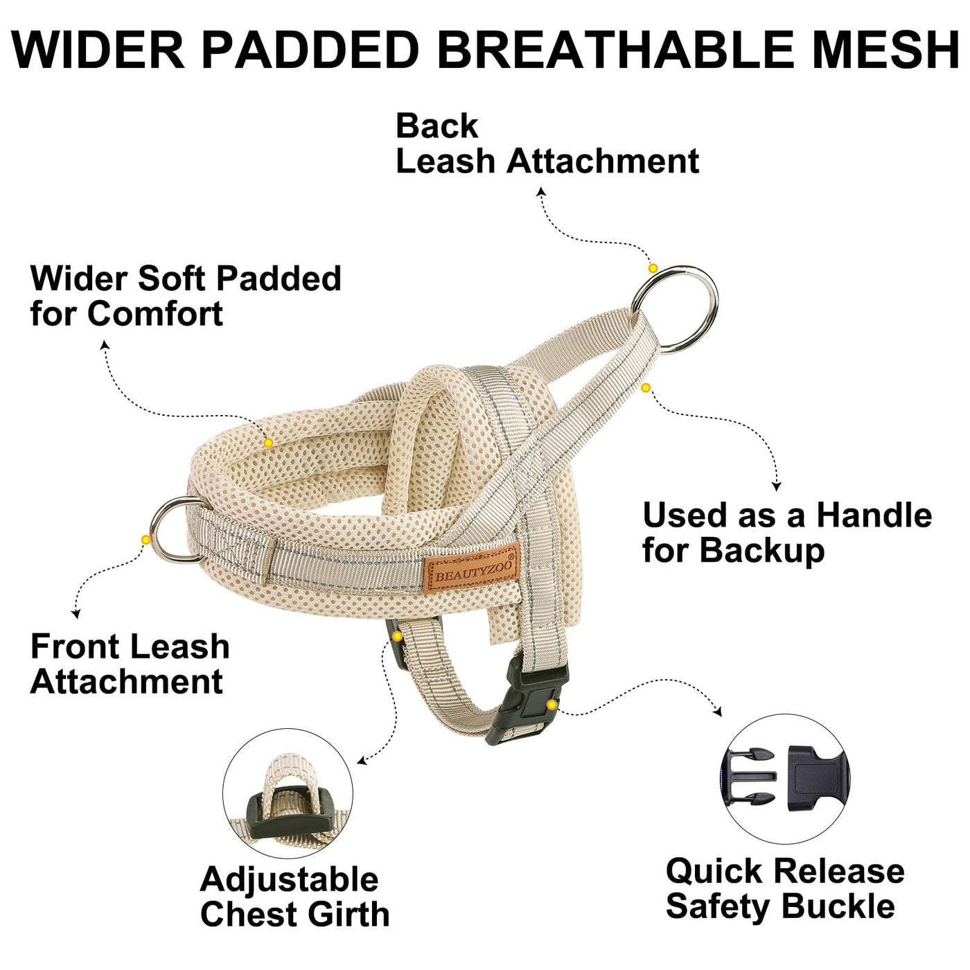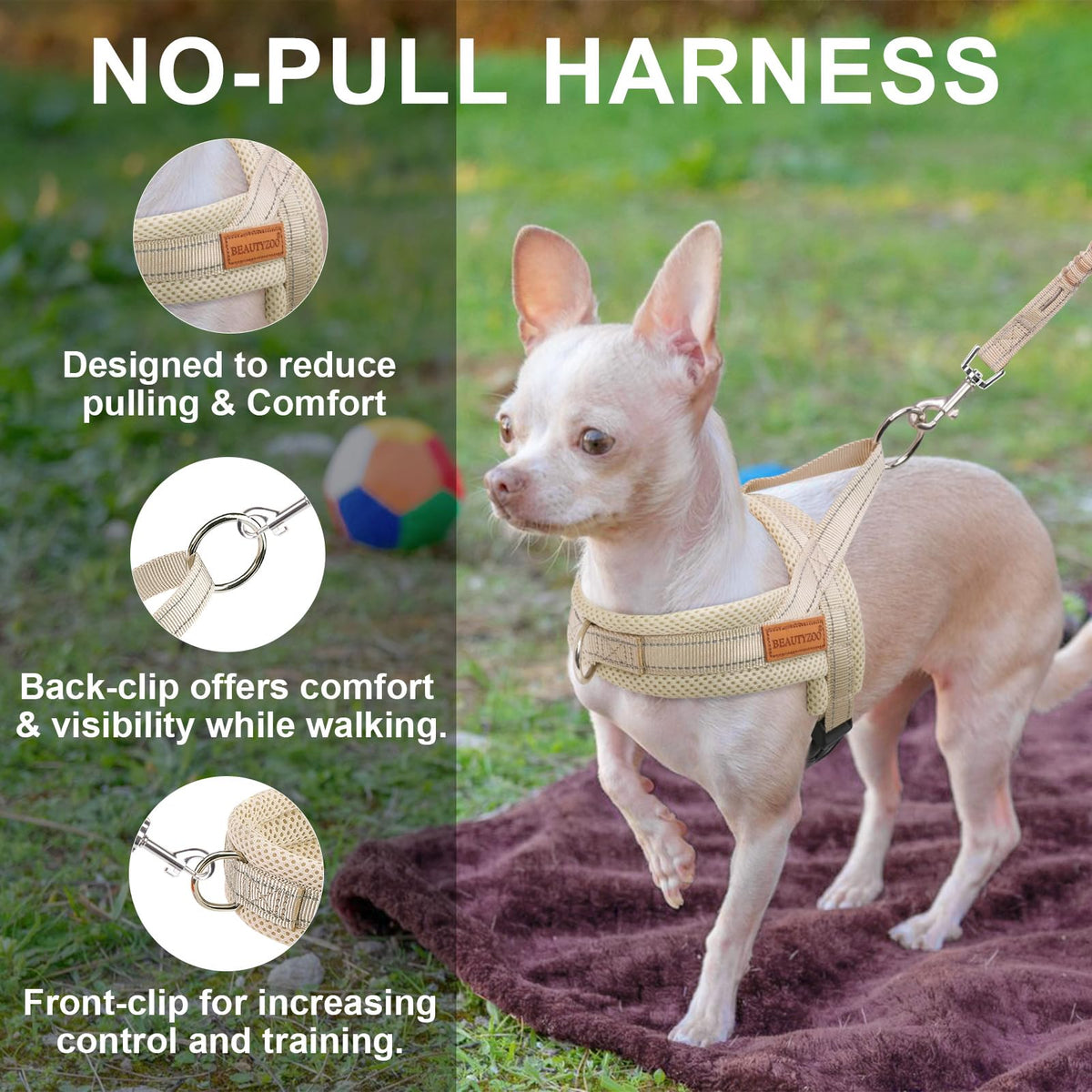 Beautyzoo Step-In Dog Harness Offers Ultimate Comfort And Security For Small Dogs. Designed With A No-Pull Front Clip And Escape-Proof Vest Structure, This Lightweight Harness Evenly Distributes Pressure To Protect Your Pets Neck And Back. The Adjustable Straps Ensure A Snug Fit For Both Girl And Boy Dogs, While The Soft Breathable Mesh Keeps Them Cool During Walks. Key Features: Reflective Strips Enhance Visibility In Low-Light Conditions. Top Handle Provides Quick Control For Emergencies Or Assisted Lifting. Step-In Design Simplifies Hassle-Free Dressing. Durable Leash Set Included For Secure Outdoor Adventures. Ideal For Daily Walks, Training, Or Travel, This Beige Harness Combines Style And Functionality. Easy To Clean And Adjustable For Growing Puppies. Ensure Your Furry Friends Safety And Comfort With Beautyzoos Thoughtfully Crafted Harness. Note: Always Measure Your Dogs Chest Size For The Perfect Fit.