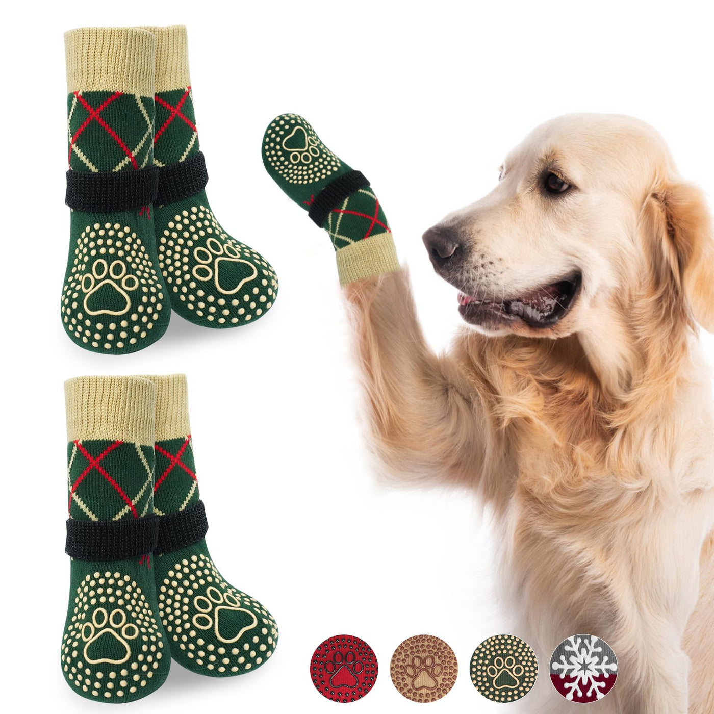BEAUTYZOO Dog Socks - Anti Slip, Non Slip, Paw Protector for Hardwood Floors - Size L