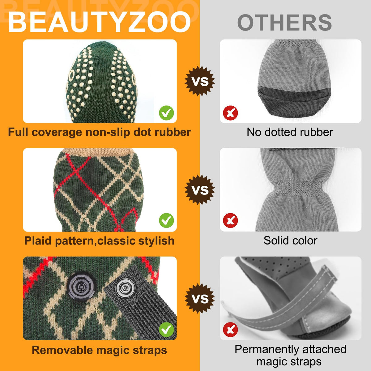BEAUTYZOO Dog Socks for Hardwood Floors - Anti Slip, Non Slip, Paw Protector, Grippy Socks for Senior Dogs - Size M