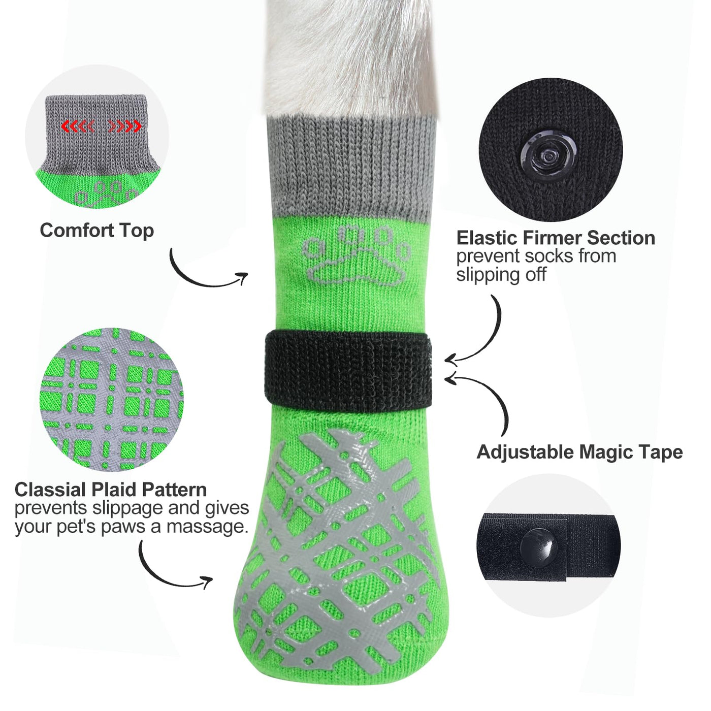Beautyzoo Dog Socks For Hardwood Floors - Shoes For Small To Large Dogs - Double Side Grips, Traction Control, Anti Slip, Paw Pr