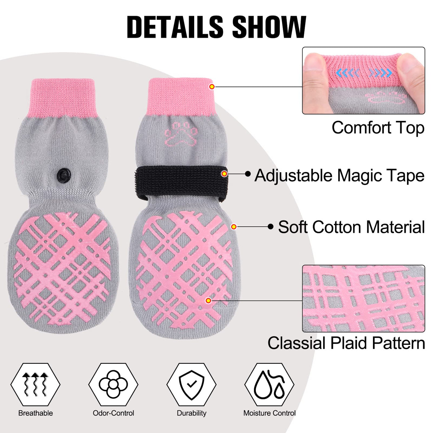 Beautyzoo Dog Socks - Prevent Licking, Hardwood Floor Protection - Shoes For Small, Medium, Large Dogs - Double Side Grips, Trac