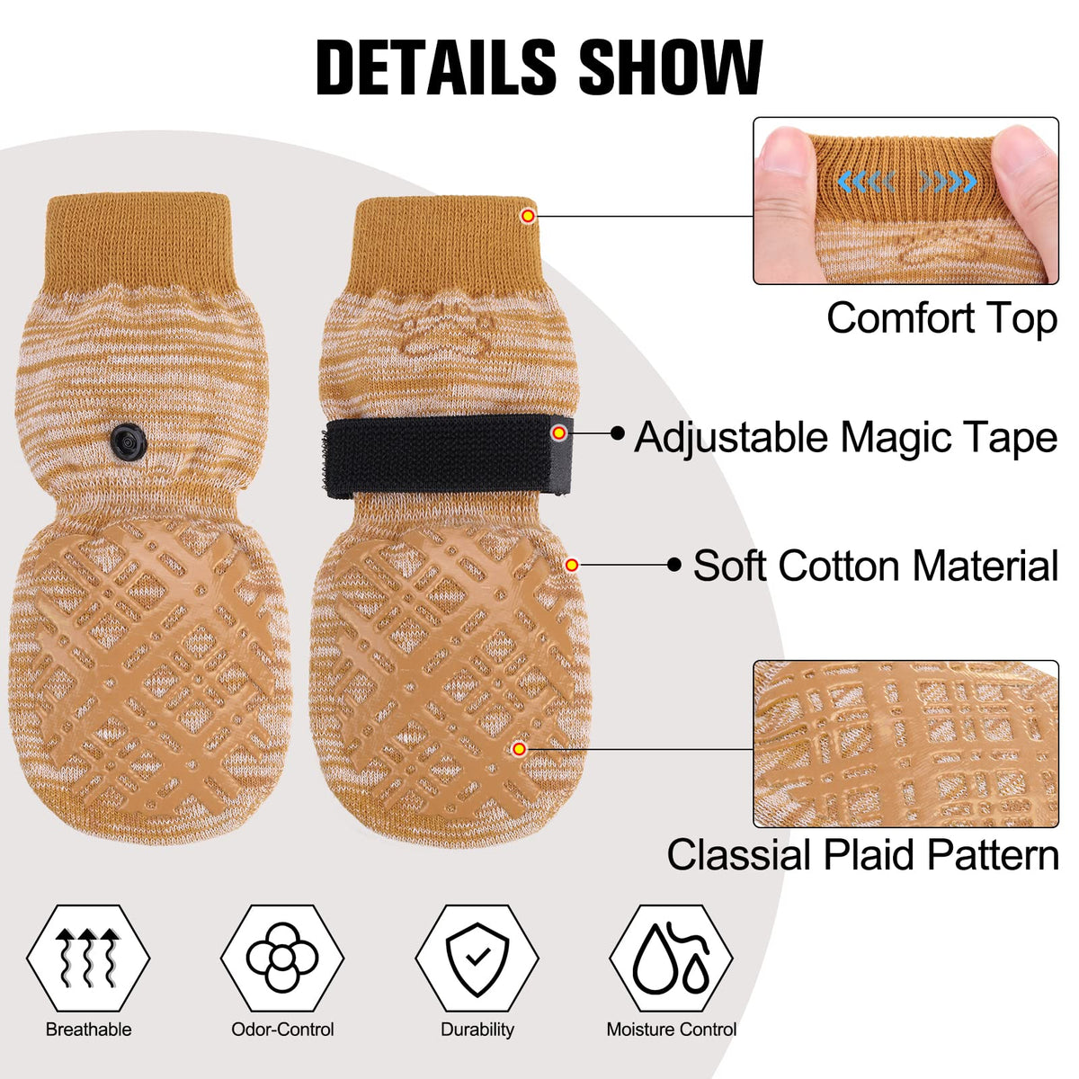 Beautyzoo Dog Socks To Prevent Licking For Hardwood Floors -Dog Boots Shoes For Small Medium Large Dogs -Double Side Grips Tract
