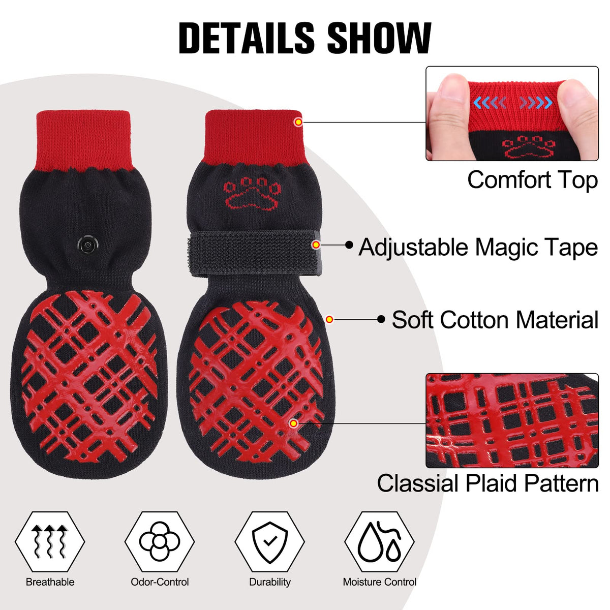Beautyzoo Dog Socks To Prevent Licking For Hardwood Floors - Socks For Small Medium Large Dogs - Hot/Cold Pavement Traction Cont