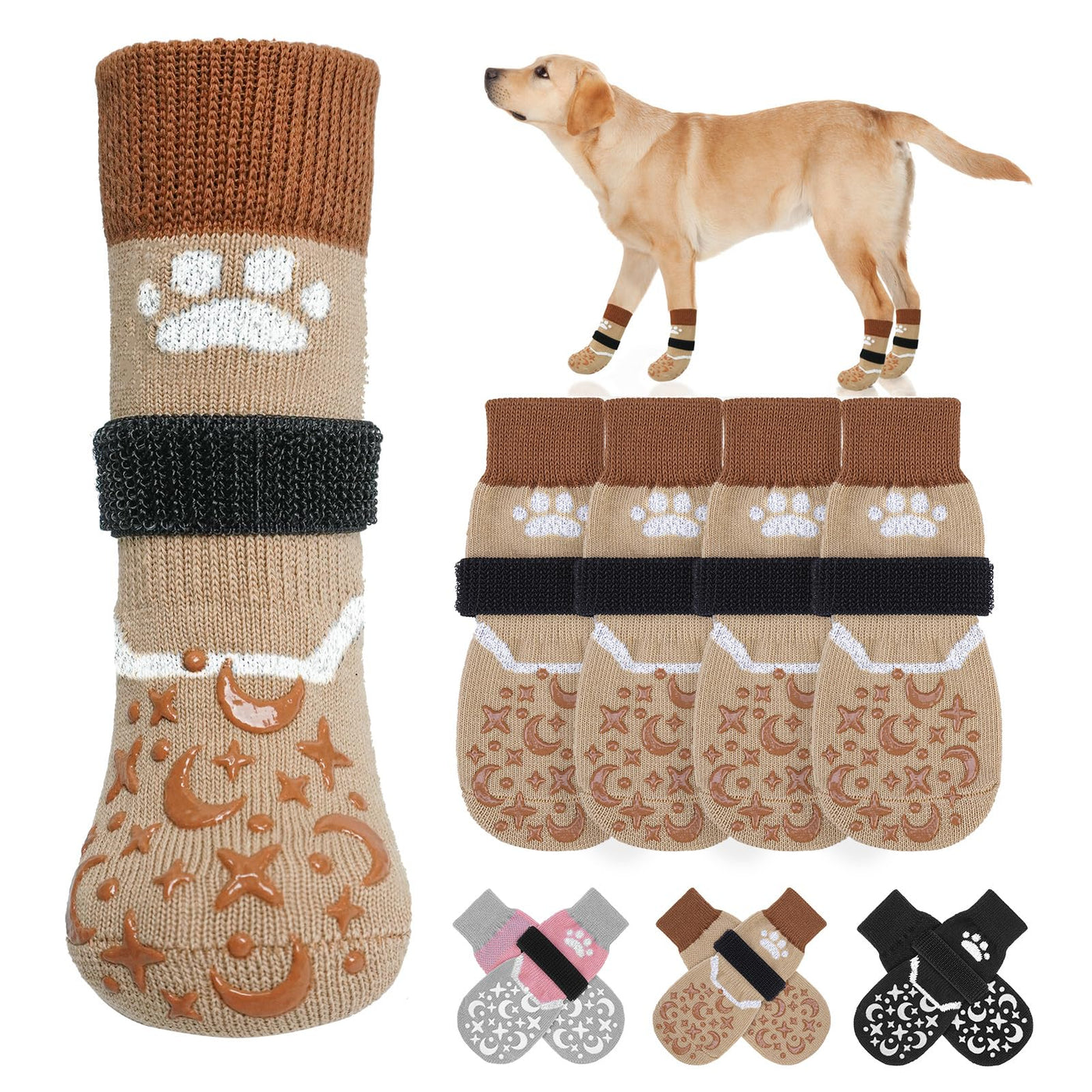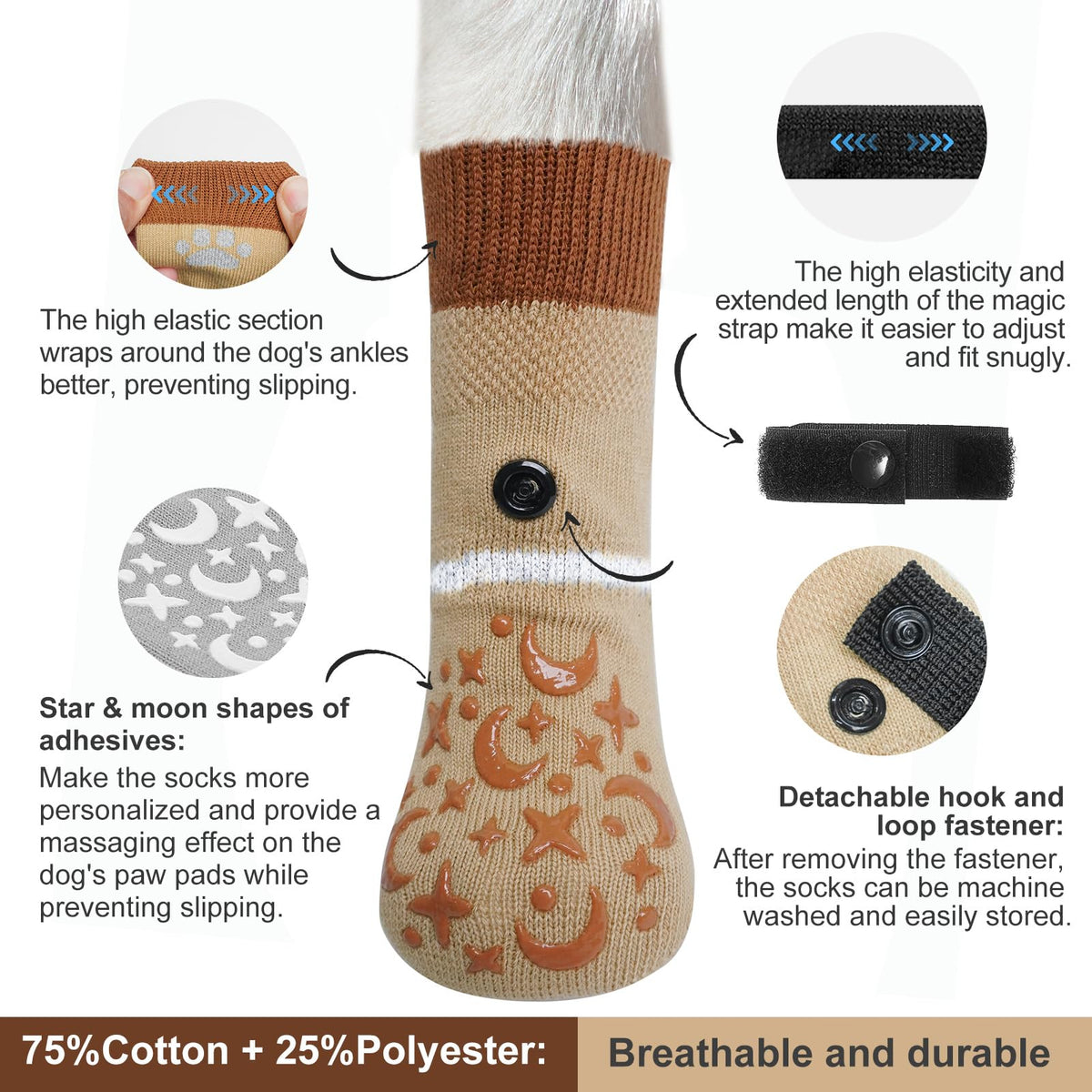 BEAUTYZOO Dog Socks to Prevent Licking Paws for Large Dogs, Dog Socks for Hardwood Floors Anti Slip, Reflective Dog Snow Socks W
