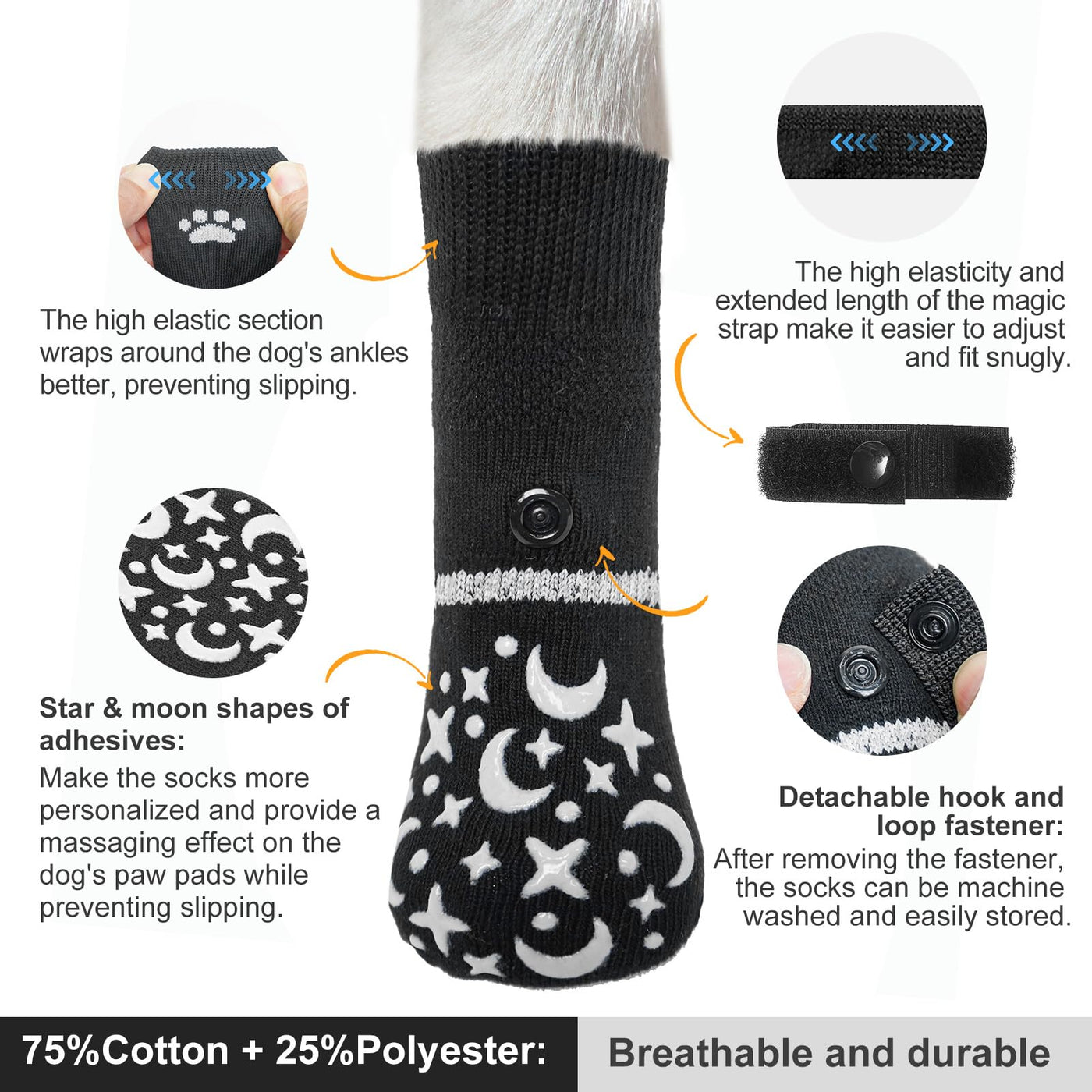 With anti-slip dog socks, no more fear of dog scratching, no more cleaning up footprints over and over again, no more worrying if our fur baby is still shivering!