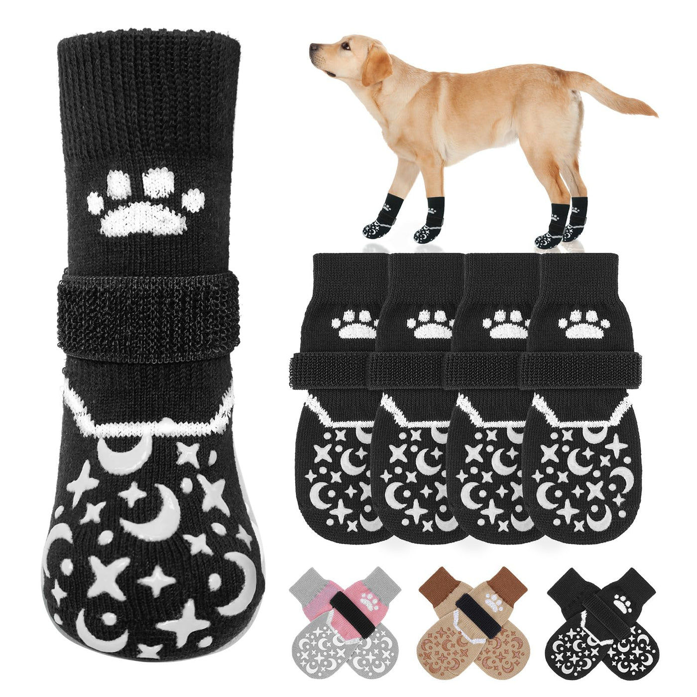 BEAUTYZOO Dog Socks to Prevent Licking Paws for Medium Dogs, Dog Socks for Hardwood Floors Anti Slip, Reflective Dog Snow Socks