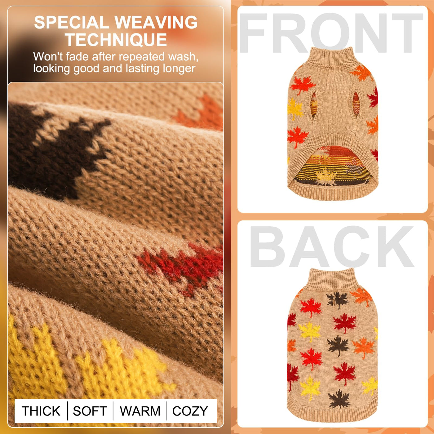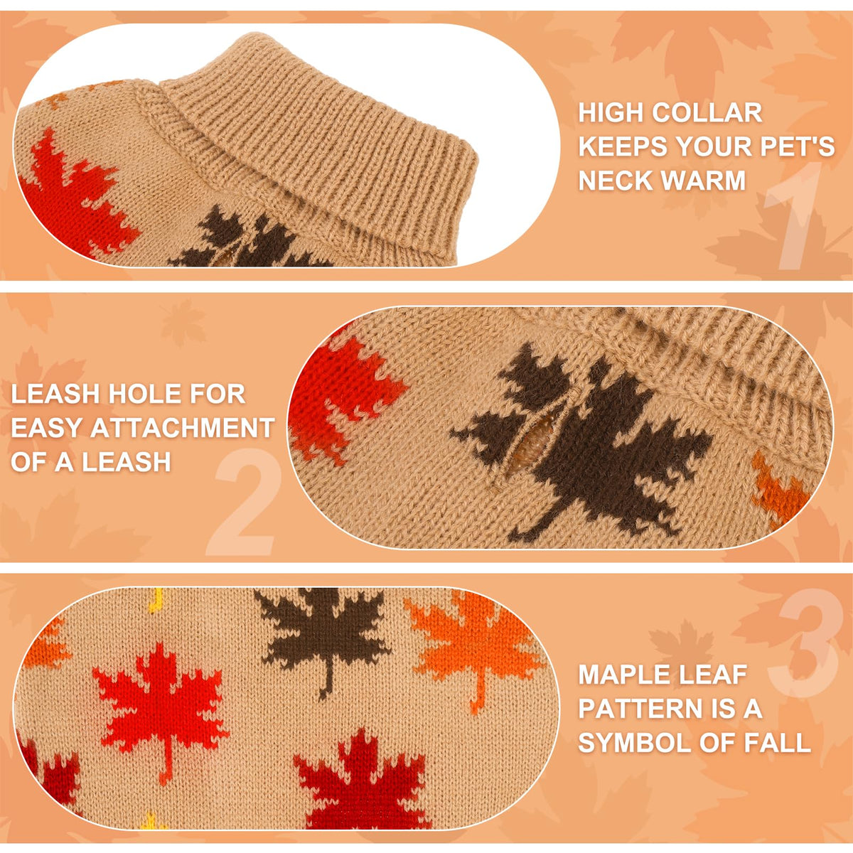 Beautyzoo Fall Sweater - Small Dog Sweaters For Girls & Boys, Turtleneck Knitwear In Cold Weather, Maple Leaf Cable Knit Puppy P