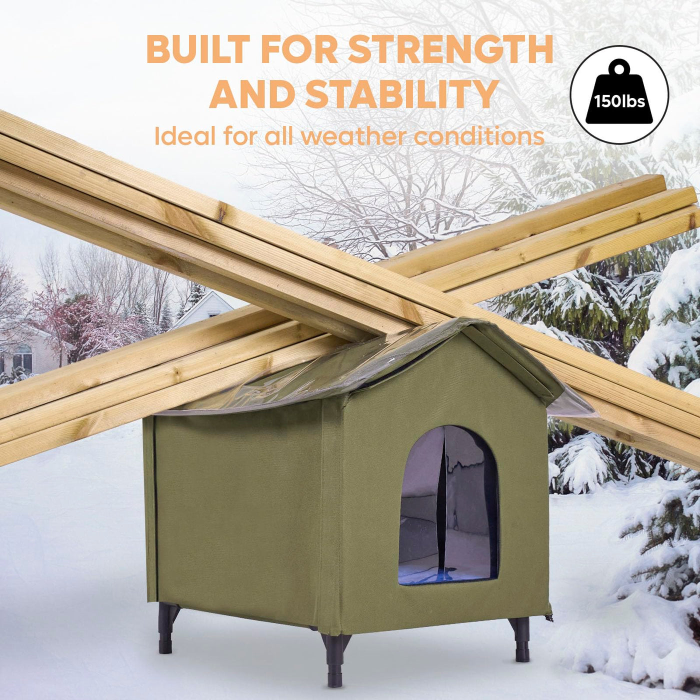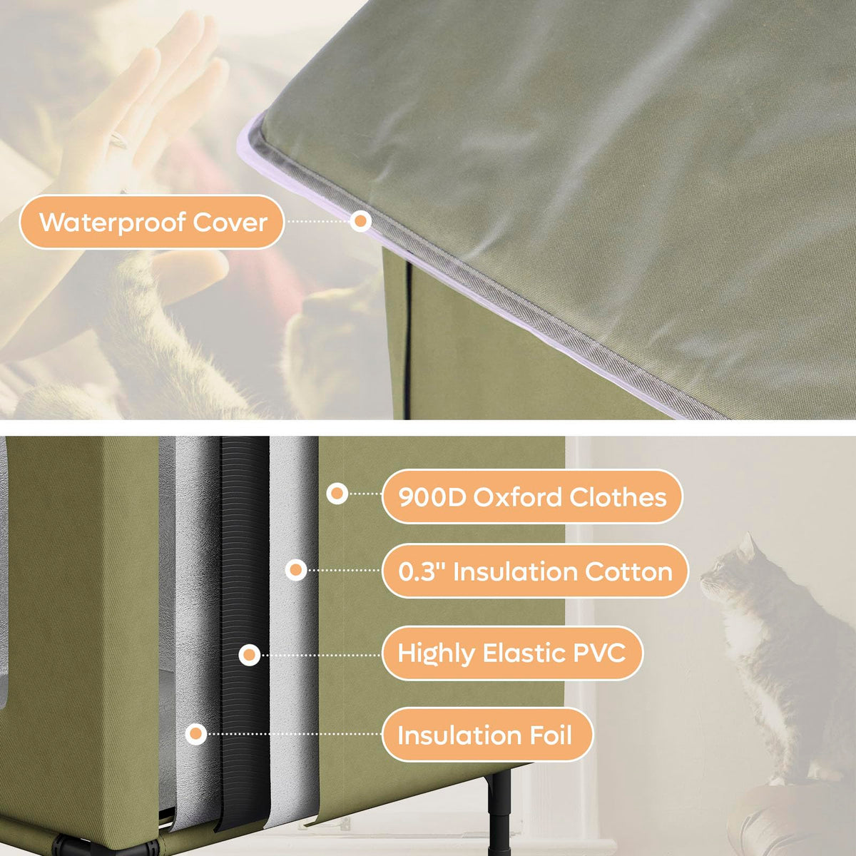 The Becuddler Outdoor Heating Cat House Features A Multi-Function Heating Pad With A Timer And Adjustable Temperature Settings. Choose From 5 Timer Ranges (2-4-8-12-24H-On) And 6 Temperature Levels (97-131F) To Suit Your Needs. Made From Premium Materials Such As 900D Oxford Fabric, Hollow Panels, Cotton, And Aluminum Foil, This Cat House Offers A Sturdy Construction And Excellent Insulation. Designed With An Elevated Base And A Slanted Roof, It Prevents Snow From Blocking The Door And Water From Seeping In From Below, While Also Reducing Rainwater And Snow Accumulation. Additionally, The Pvc Roof Cover And Curtain Provide Extra Water Resistance, Ensuring The Interior Remains Dry And Comfortable For Your Feline Friend.
