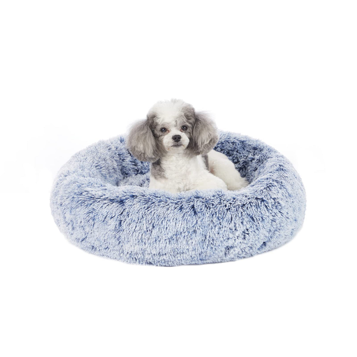 Bedfolks Calming Donut Dog Bed, 23 Inches Round Fluffy Dog Beds For Small Dogs, Machine Washable Anti-Anxiety Plush Puppy Bed(Na