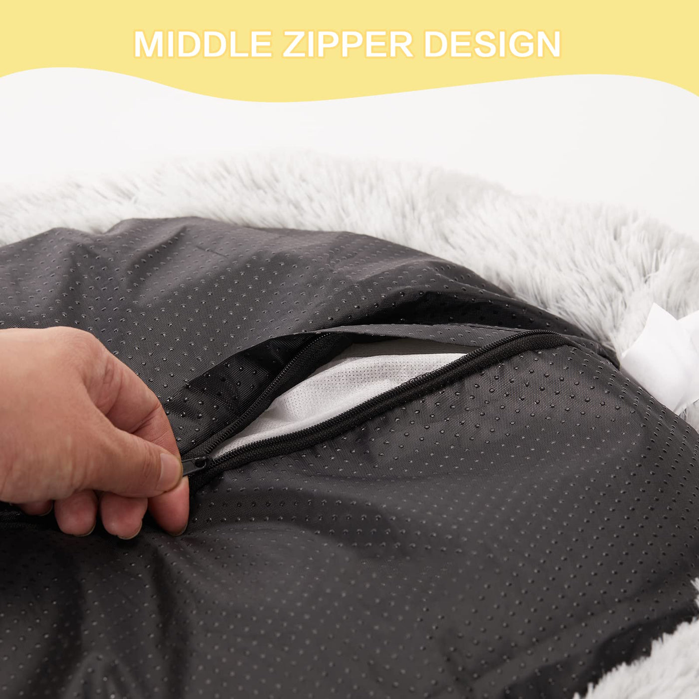Q: Is the Bedfolks Calming Donut Dog Bed machine washable?A: Yes, the bed features a middle zipper on the bottom, making the cover removable and machine washable for your convenience. It is recommended to tumble dry at low temperature and avoid bleach to preserve the bed's quality.