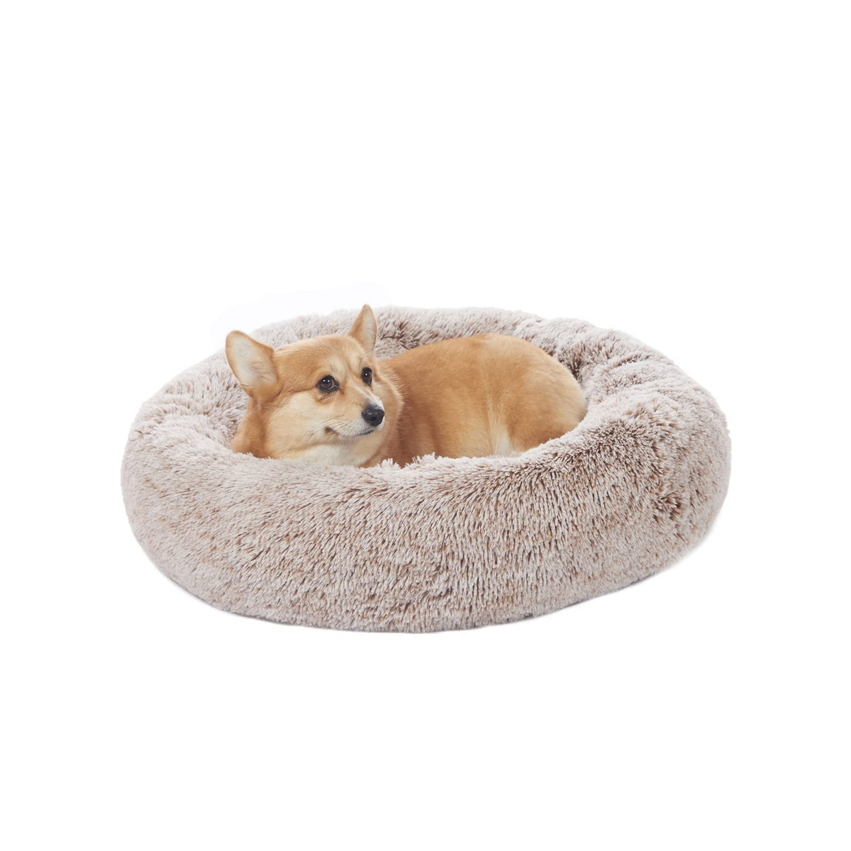 Bedfolks Calming Donut Dog Bed - 30'' Round Plush For Medium Dogs, Anti-Anxiety, Machine Washable (Brown, Medium)