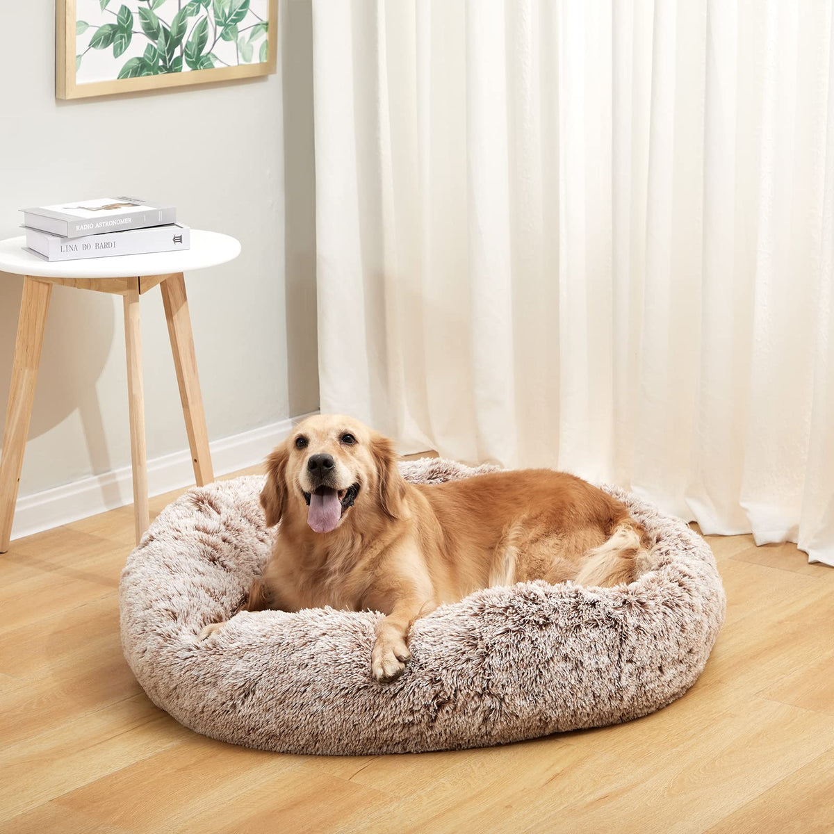 Bedfolks Calming Donut Dog Bed, 36 Inches Round Fluffy Dog Beds For Large Dogs, Anti-Anxiety Plush Dog Bed, Machine Washable Pet
