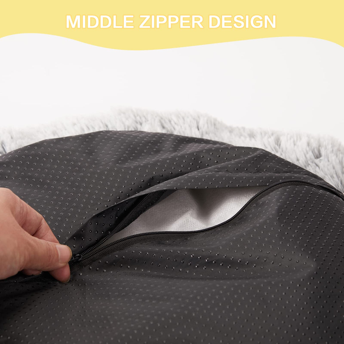 Q: How do I clean the Bedfolks Calming Donut Dog Bed?A: This dog bed features a removable cover with a middle zipper, making it easy to machine wash. Simply wash the cover on a gentle cycle and tumble dry at low temperature. Avoid using bleach.
